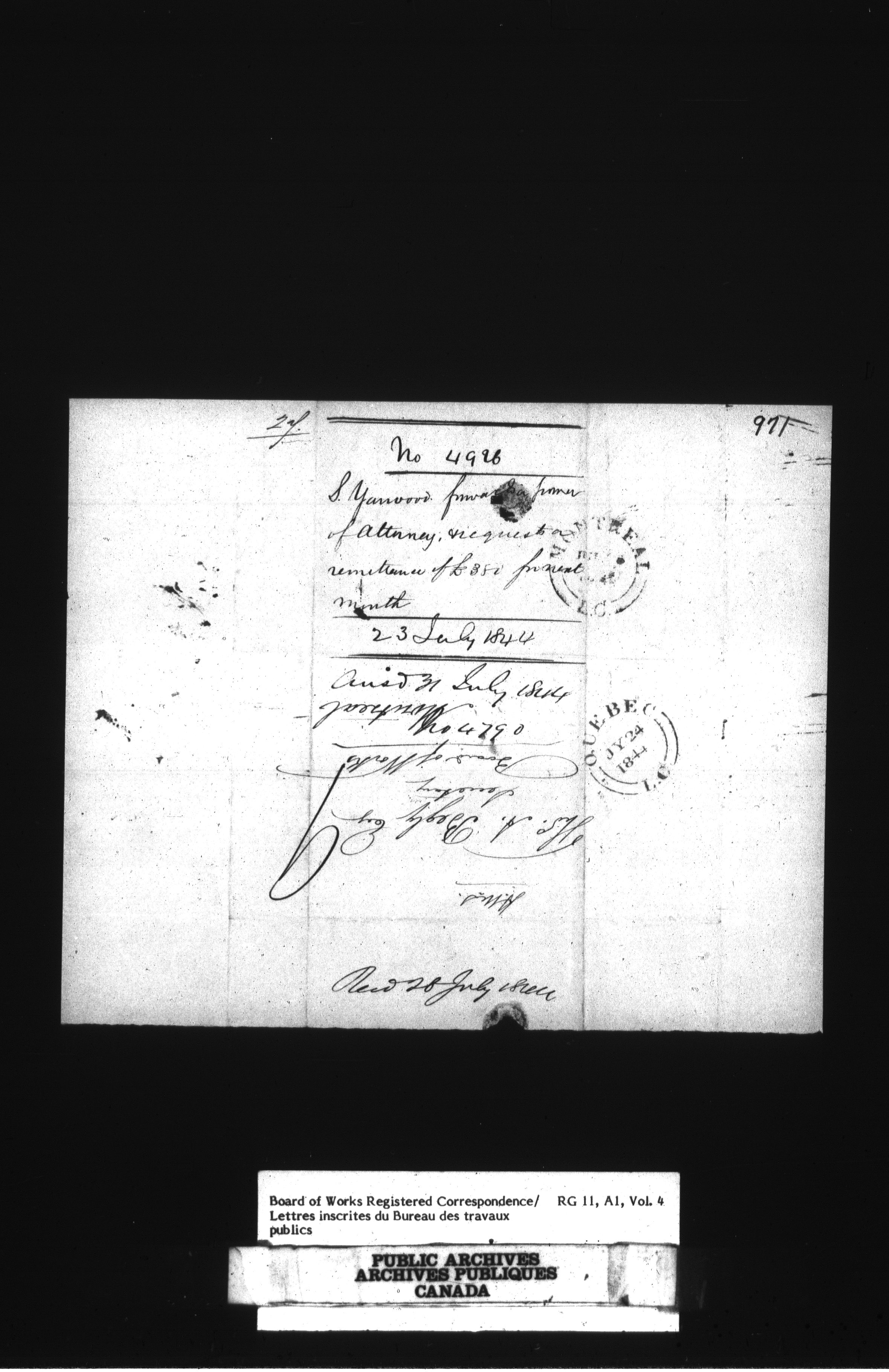 Department of Public Works, Board of Works records, official correspondence : Registered correspondence, 1842-1860 : T-1644