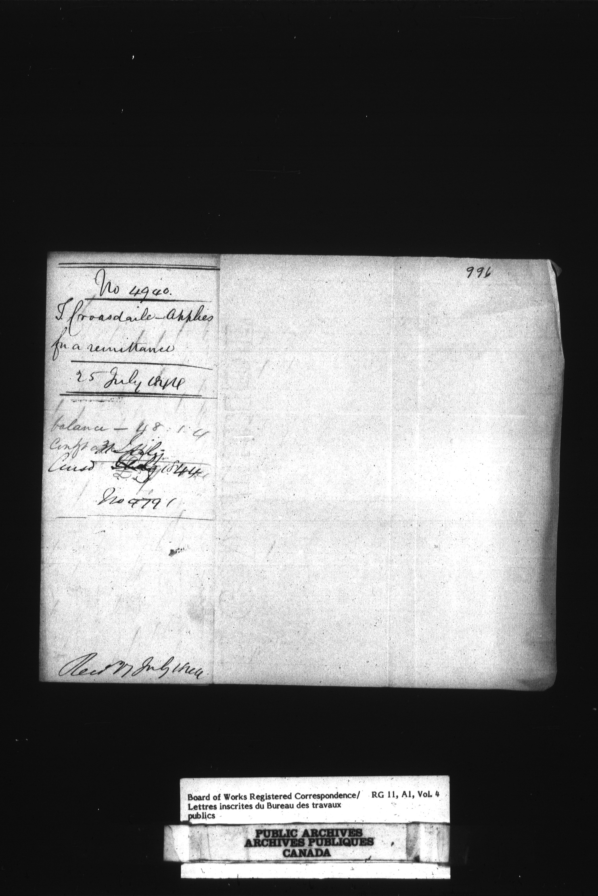 Department of Public Works, Board of Works : Official registered correspondence, 1842-1860 - 1644