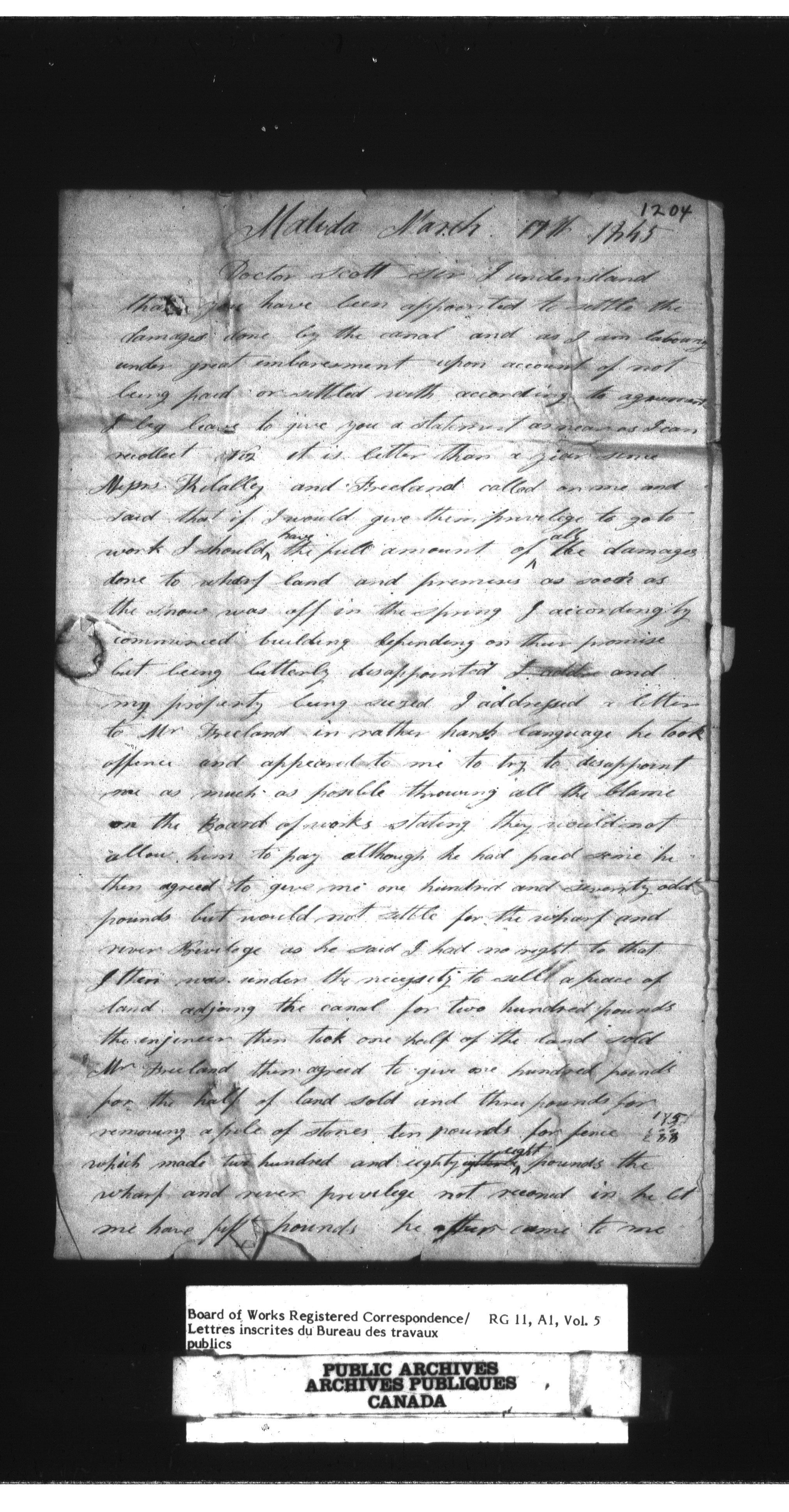 Department of Public Works, Board of Works : Official registered correspondence, 1842-1860 - 1645
