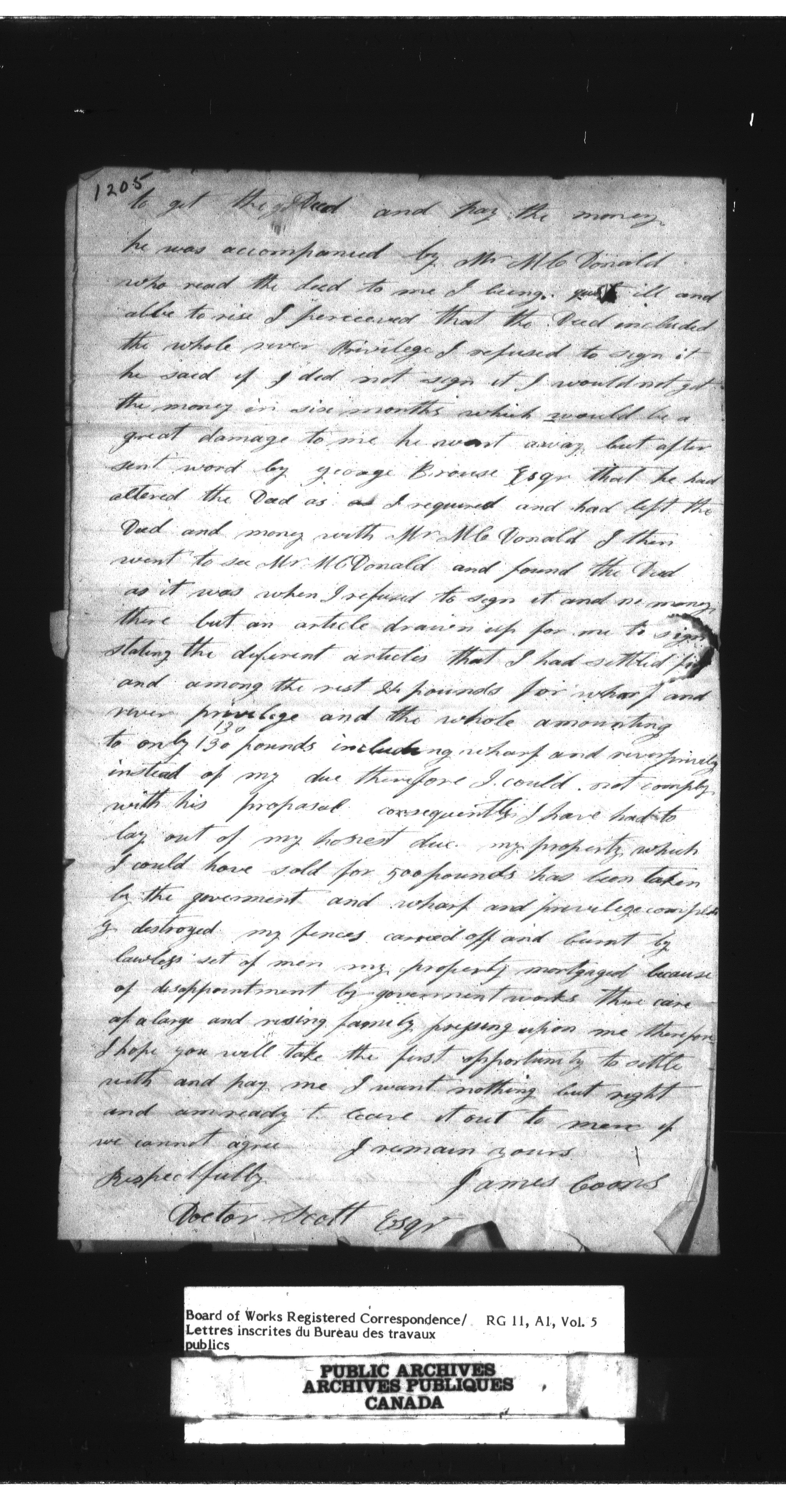 Department of Public Works, Board of Works : Official registered correspondence, 1842-1860 - 1645