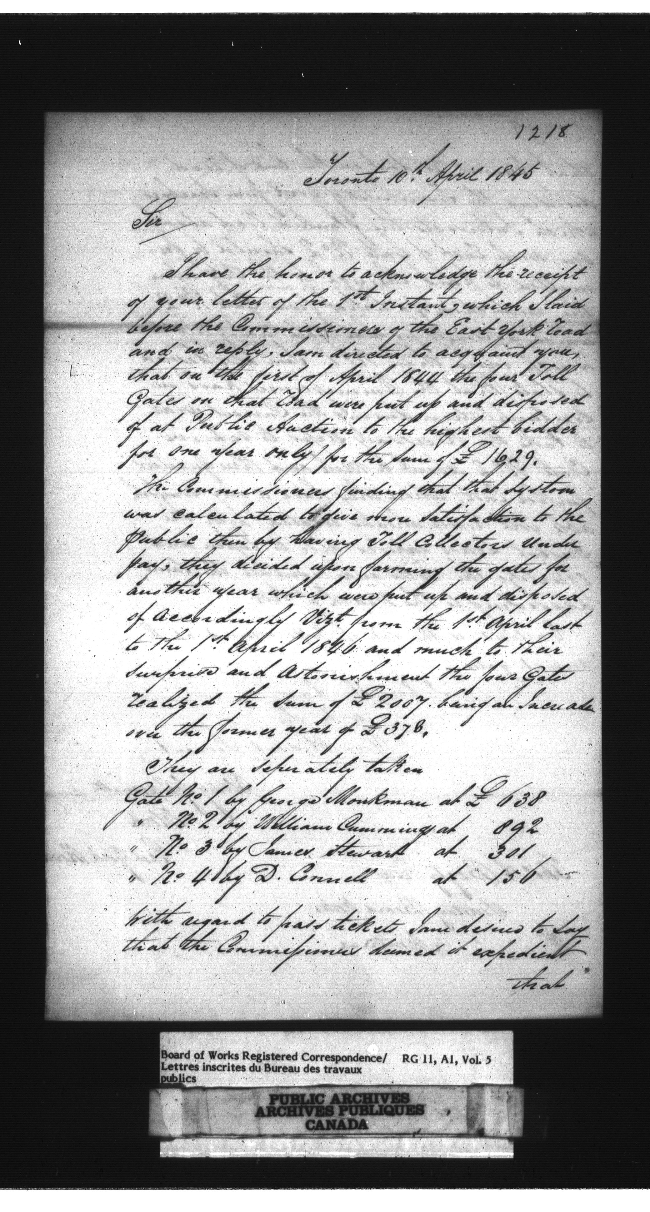 Department of Public Works, Board of Works : Official registered correspondence, 1842-1860 - 1645