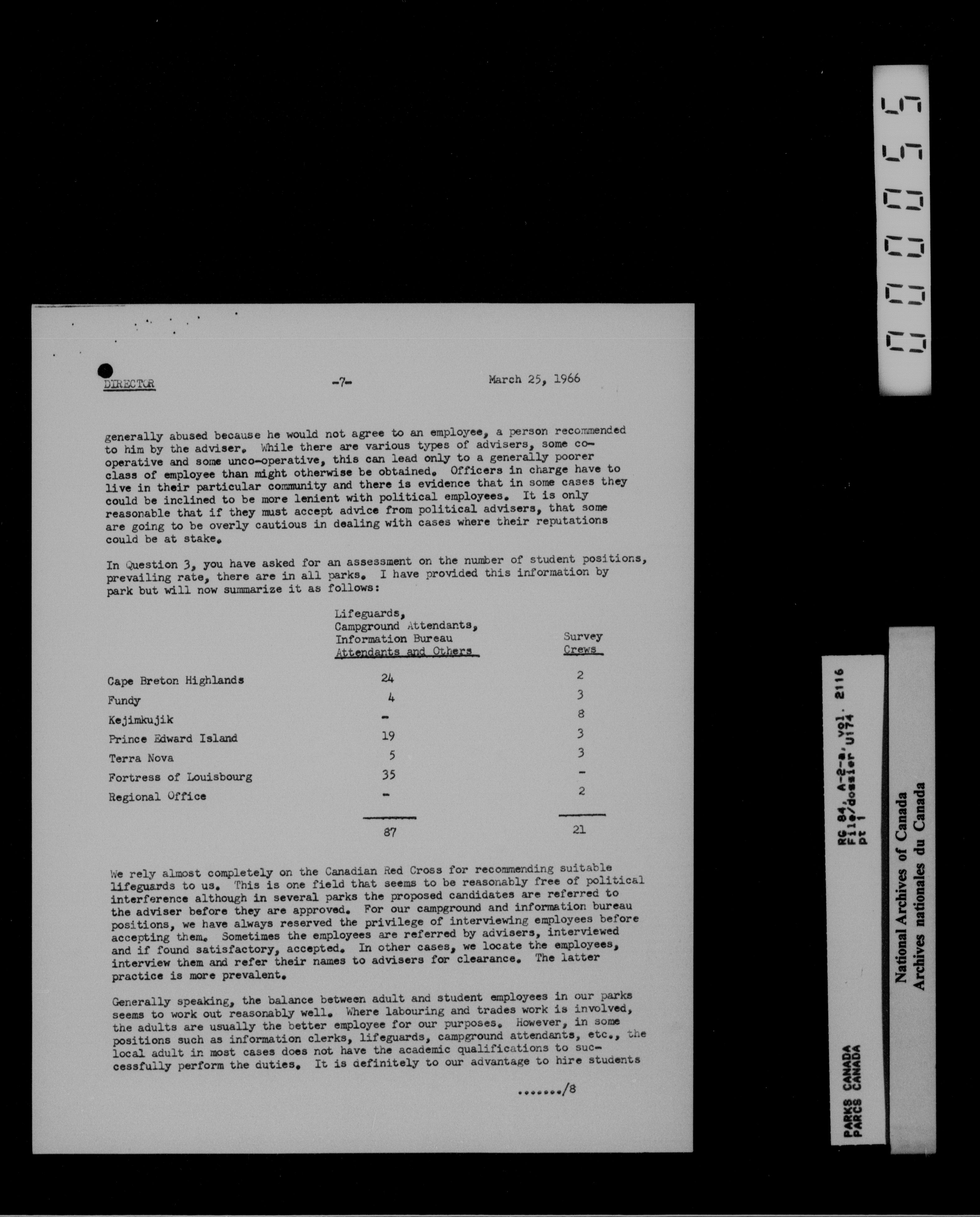 Department of Canadian Heritage, Canadian Parks Service : Park/subject classification system : T-16459