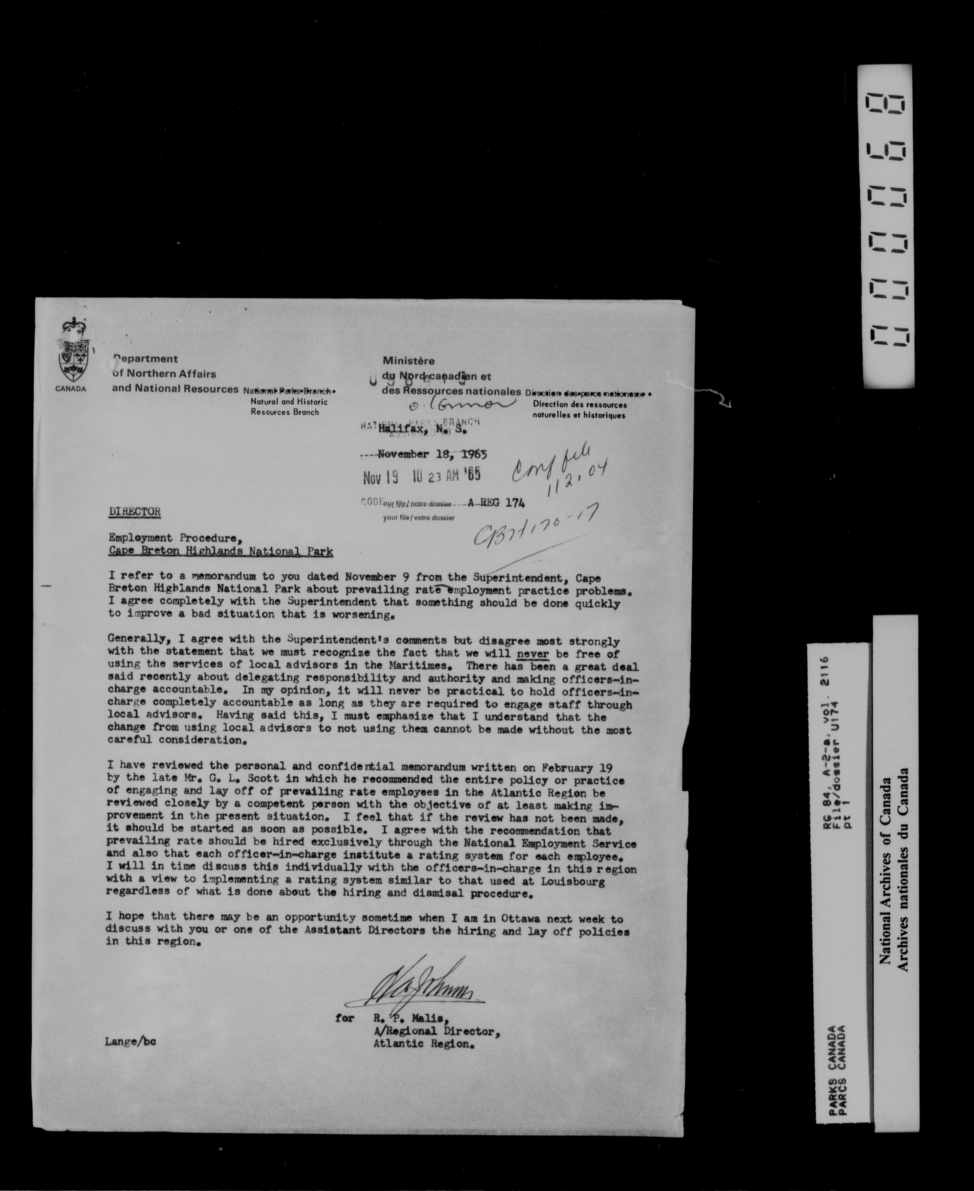 Department of Canadian Heritage, Canadian Parks Service : Park/subject classification system : T-16459