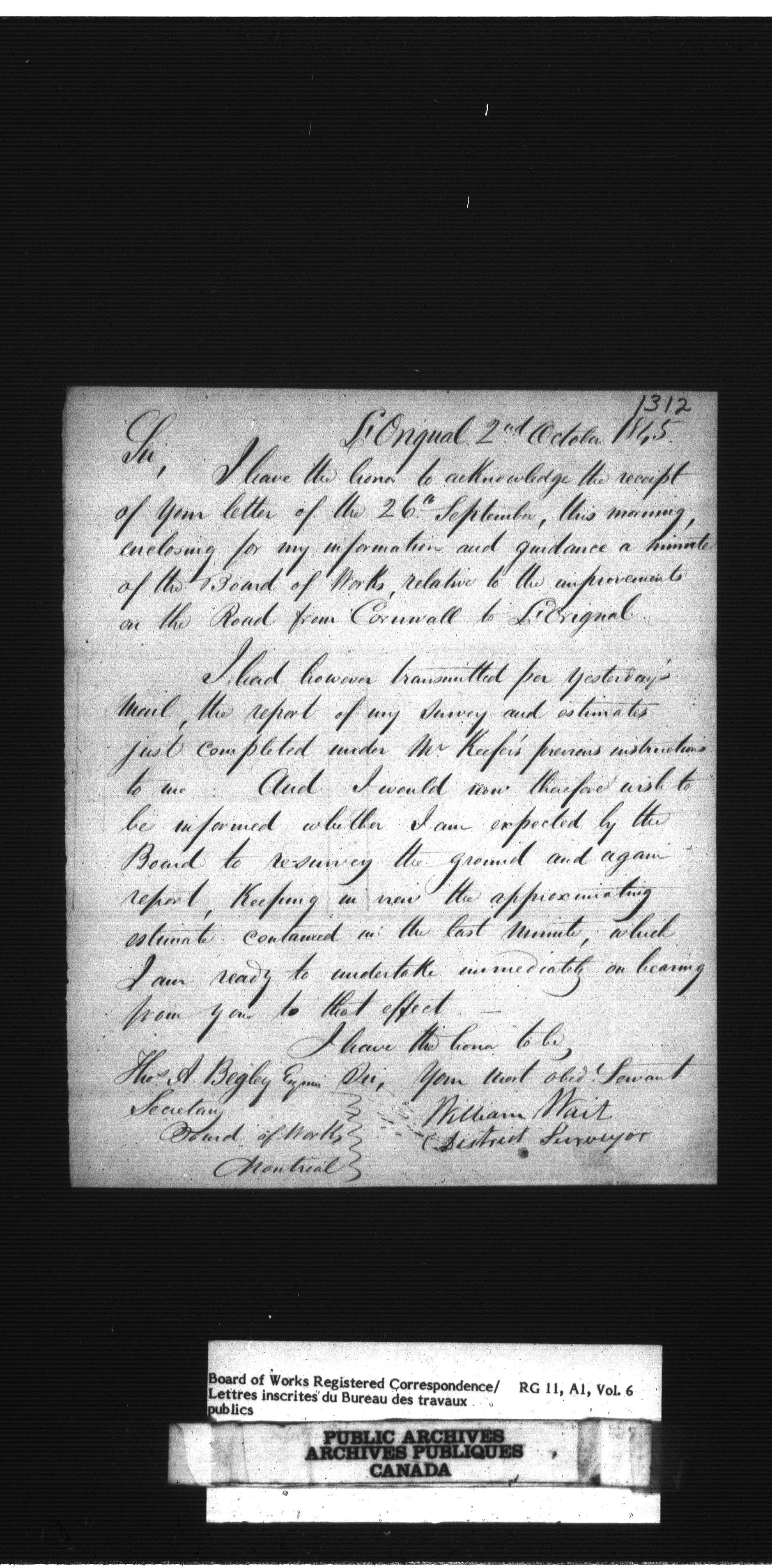 Department of Public Works, Board of Works records, official correspondence : Registered correspondence, 1842-1860 : T-1646