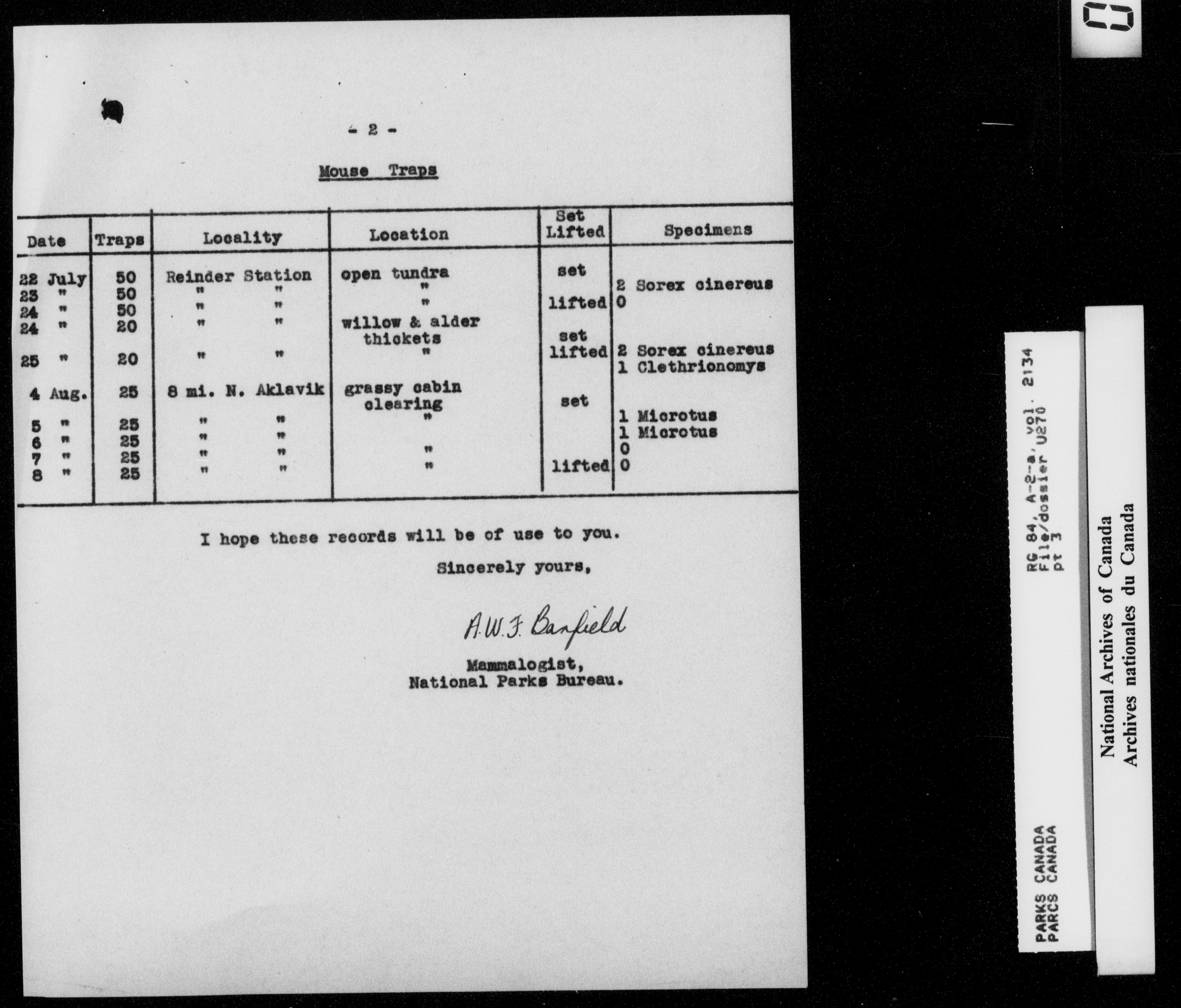 Department of Canadian Heritage, Canadian Parks Service : Park/subject classification system : T-16472