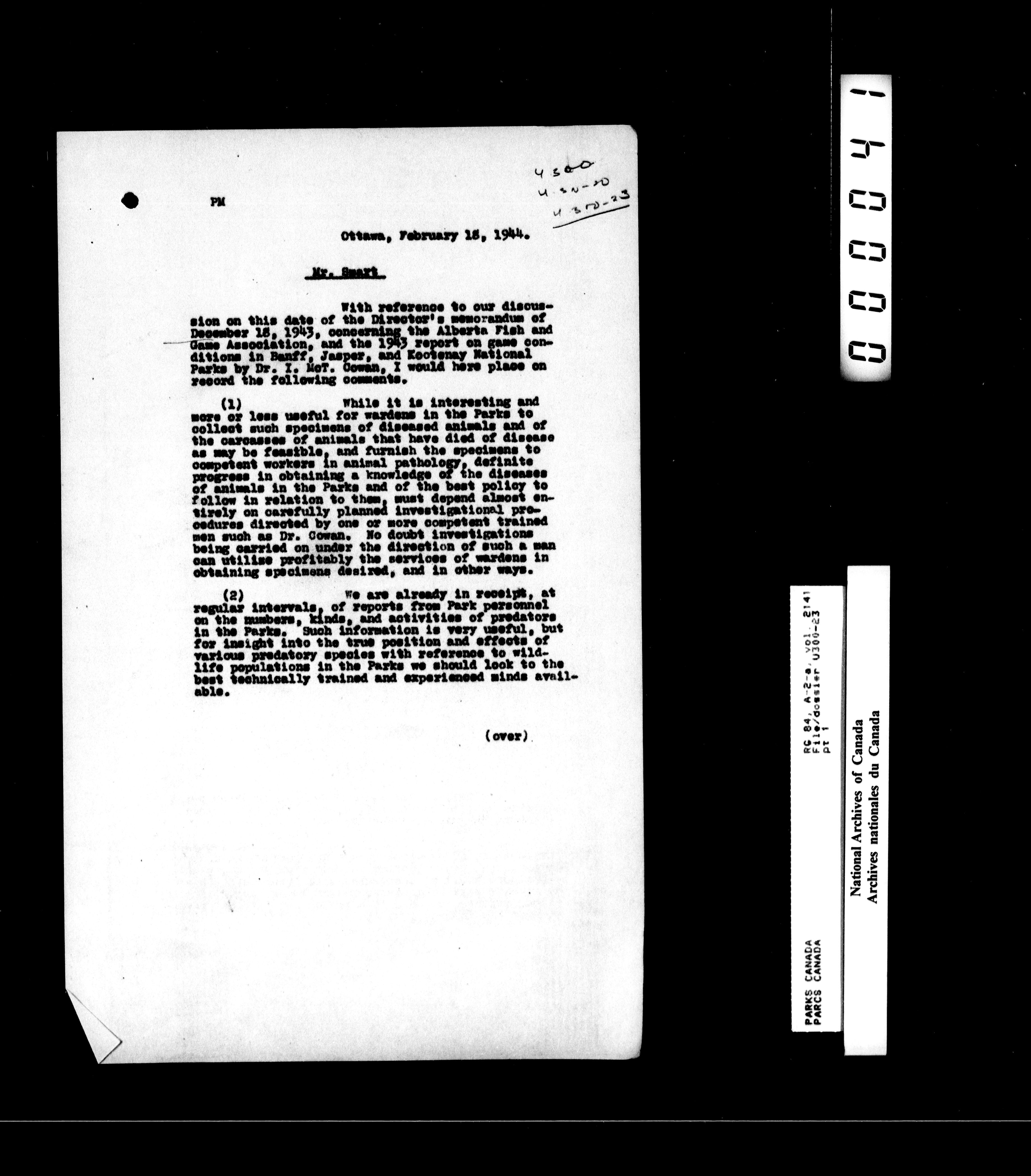 Department of Canadian Heritage, Canadian Parks Service : Park/subject classification system : T-16479