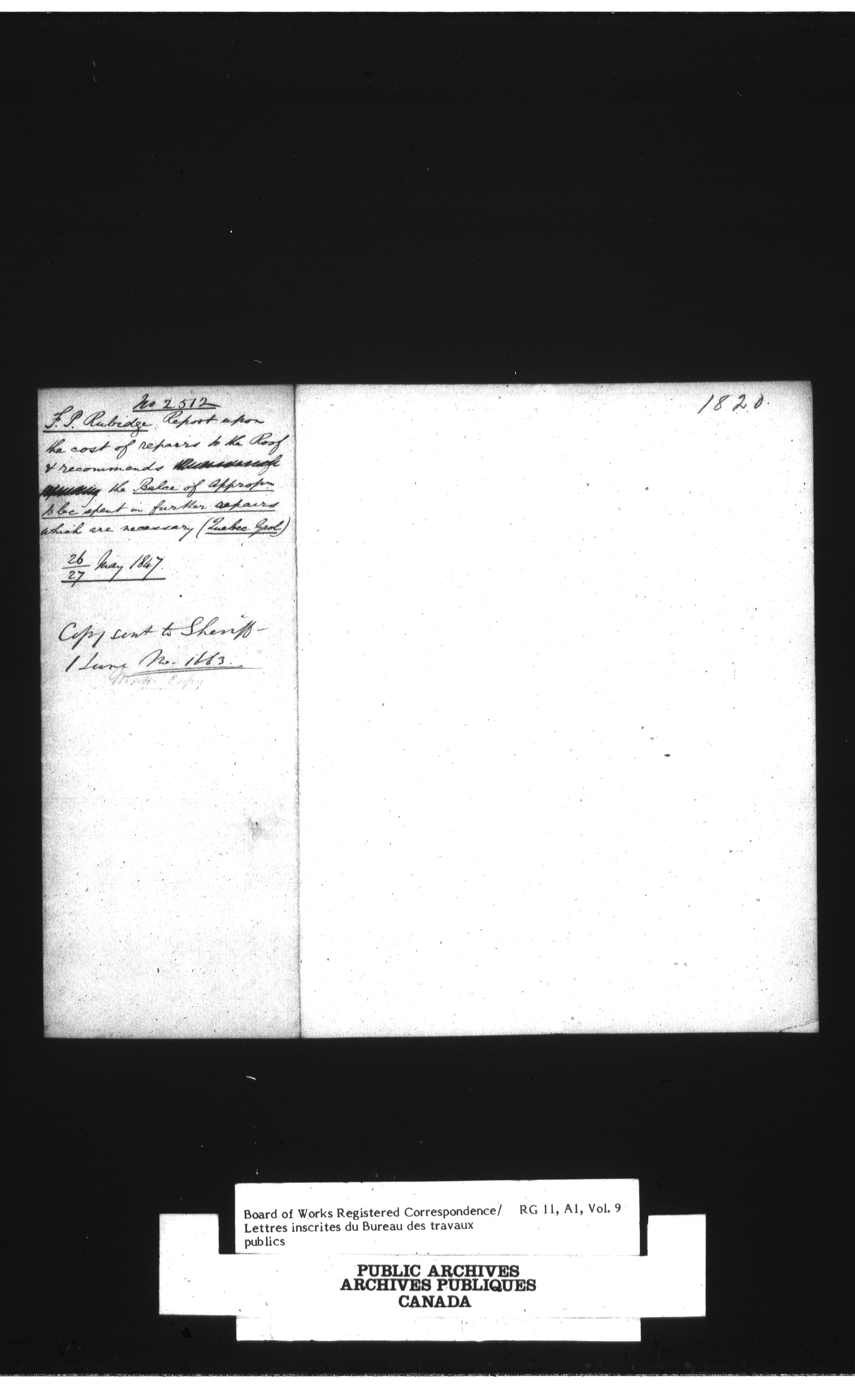 Department of Public Works, Board of Works records, official correspondence : Registered correspondence, 1842-1860 : T-1648