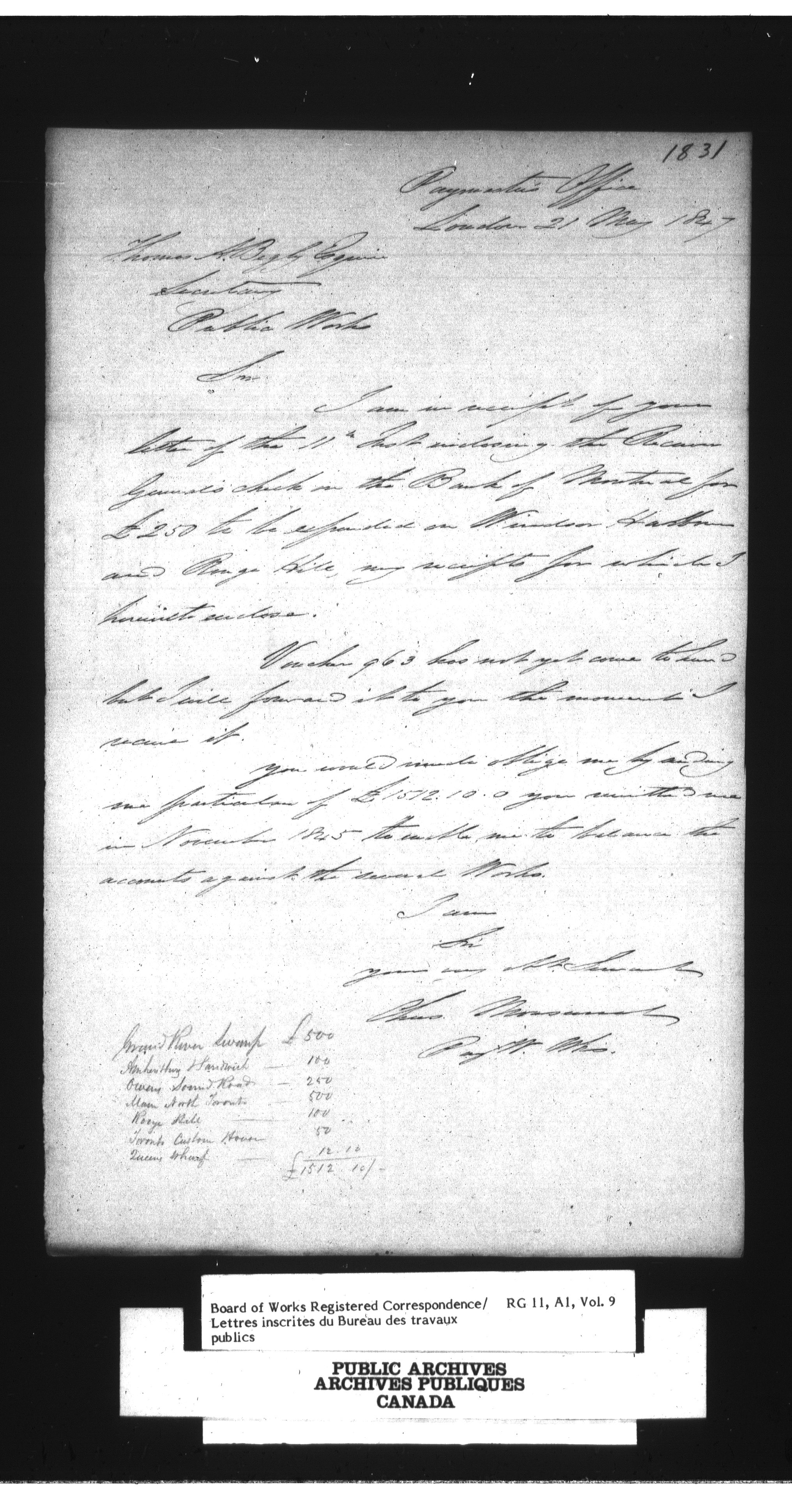 Department of Public Works, Board of Works : Official registered correspondence, 1842-1860 - 1648