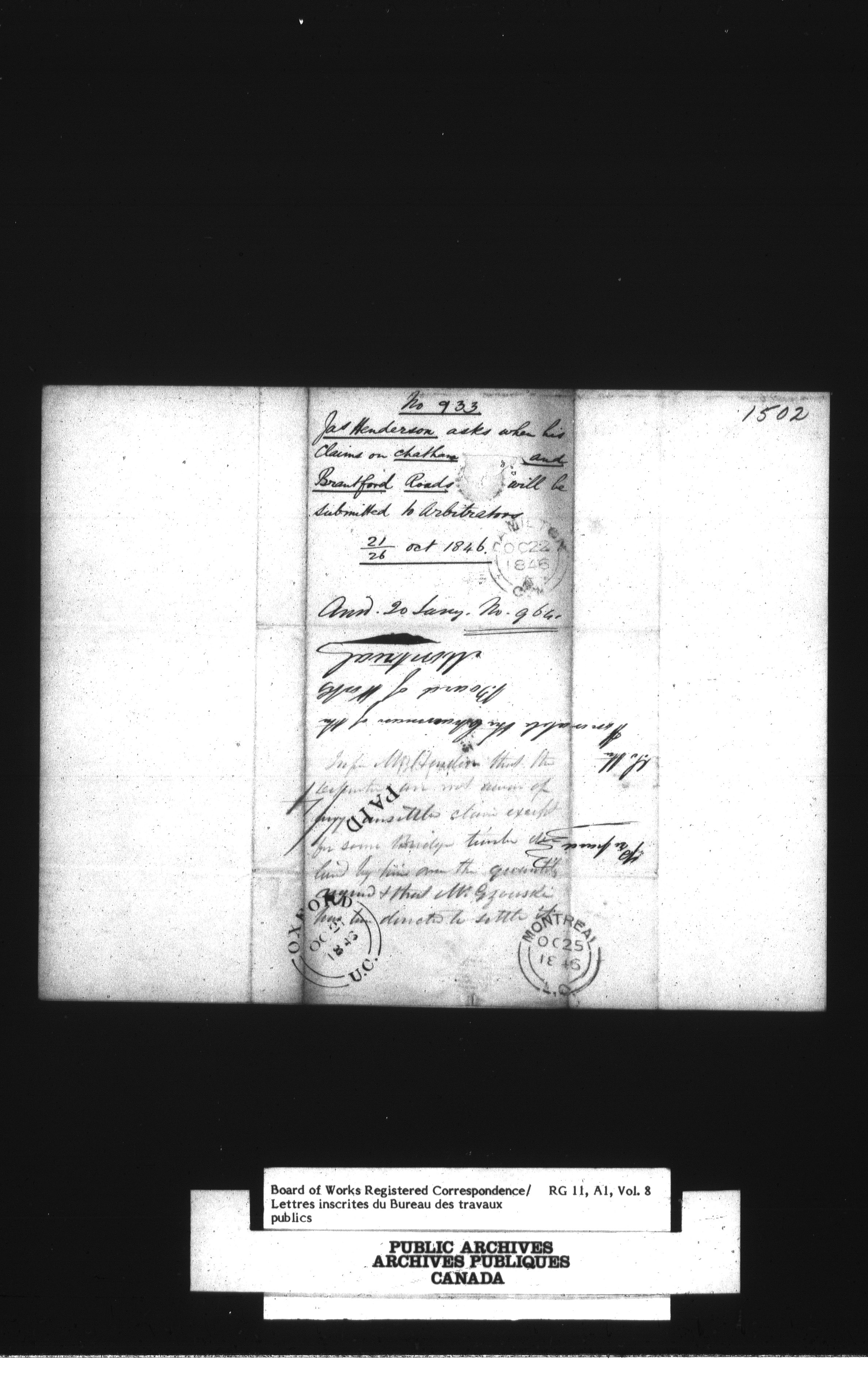Department of Public Works, Board of Works : Official registered correspondence, 1842-1860 - 1648