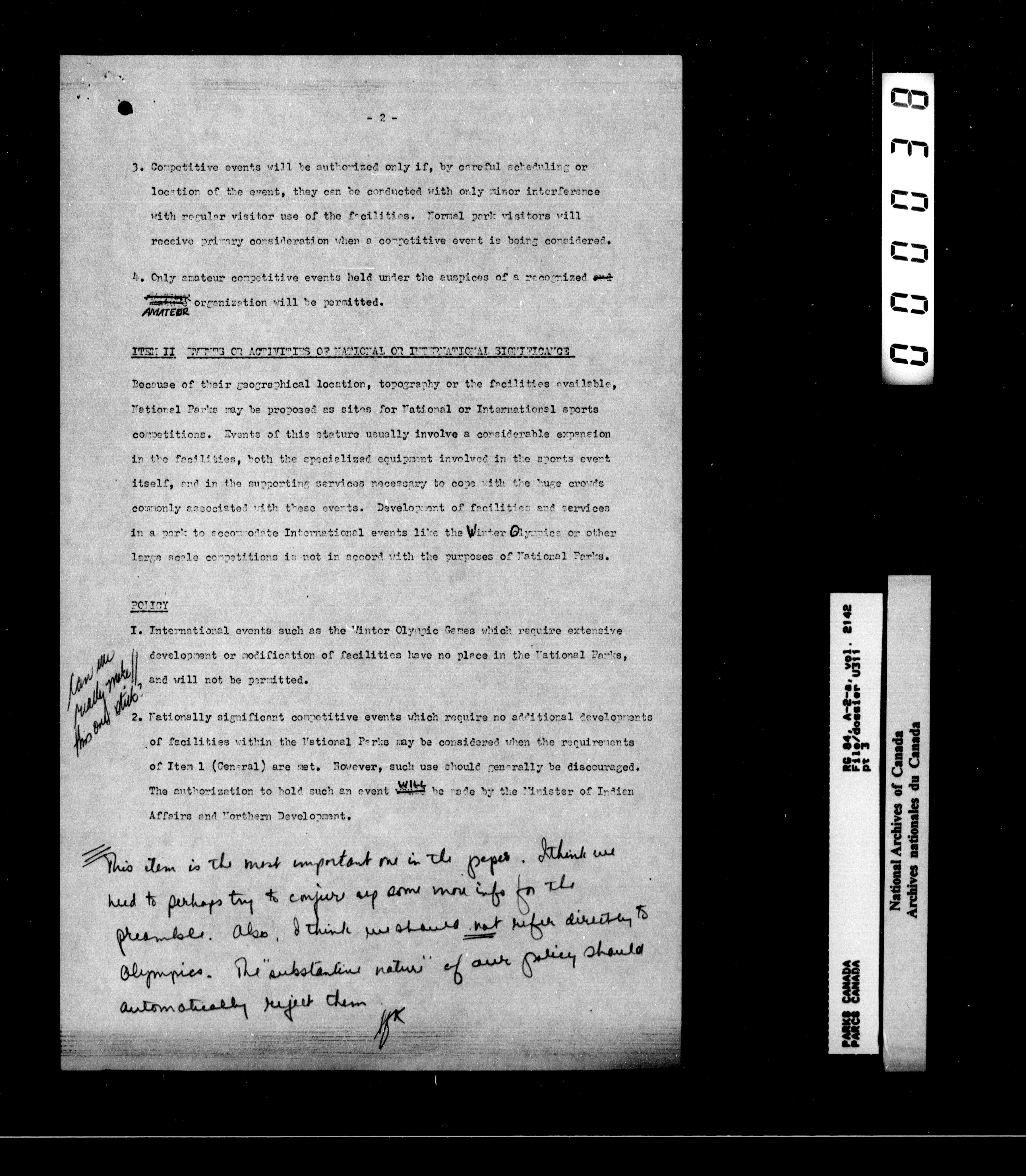 Department of Canadian Heritage, Canadian Parks Service : Park/subject classification system : T-16480