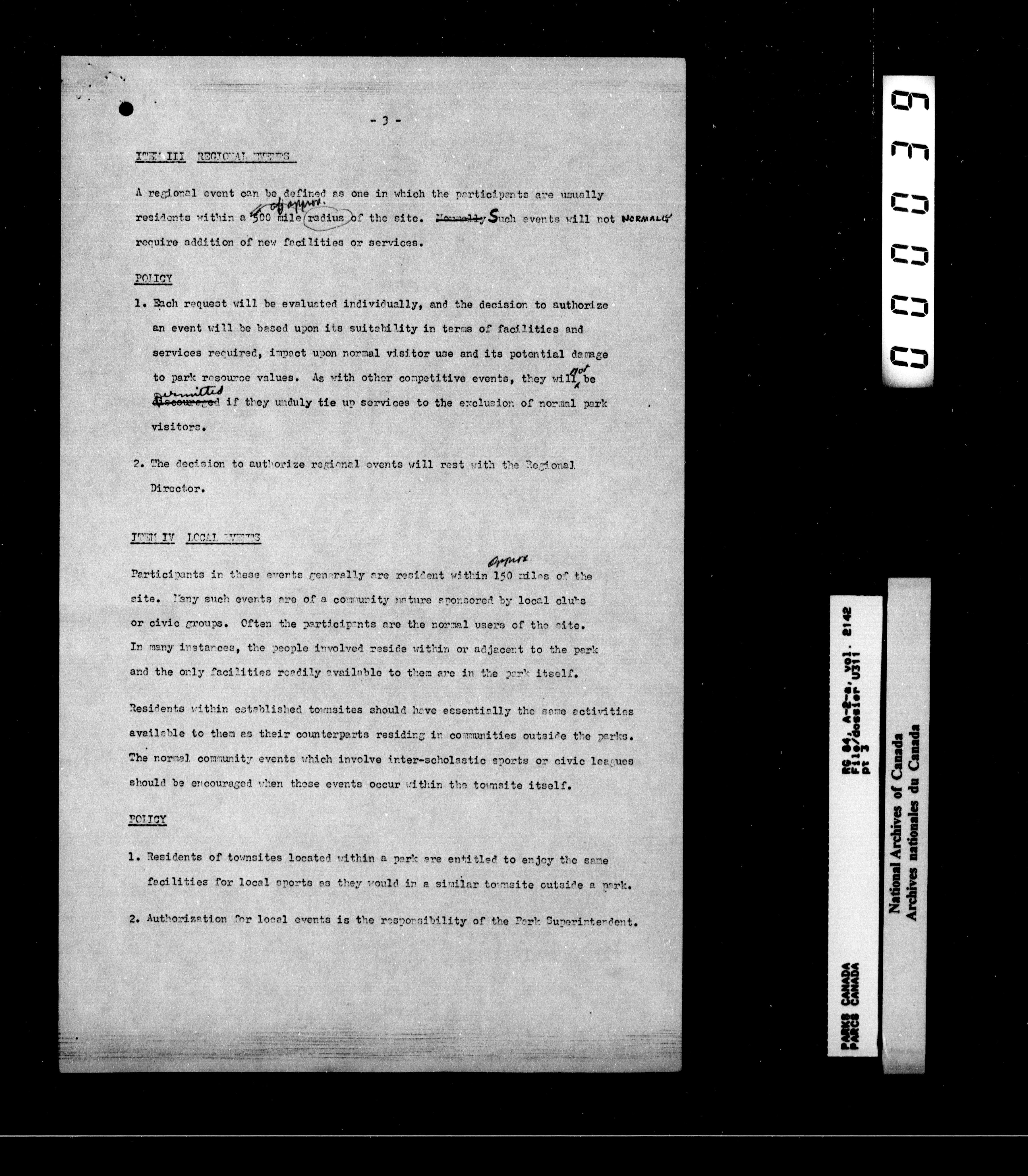 Department of Canadian Heritage, Canadian Parks Service : Park/subject classification system : T-16480