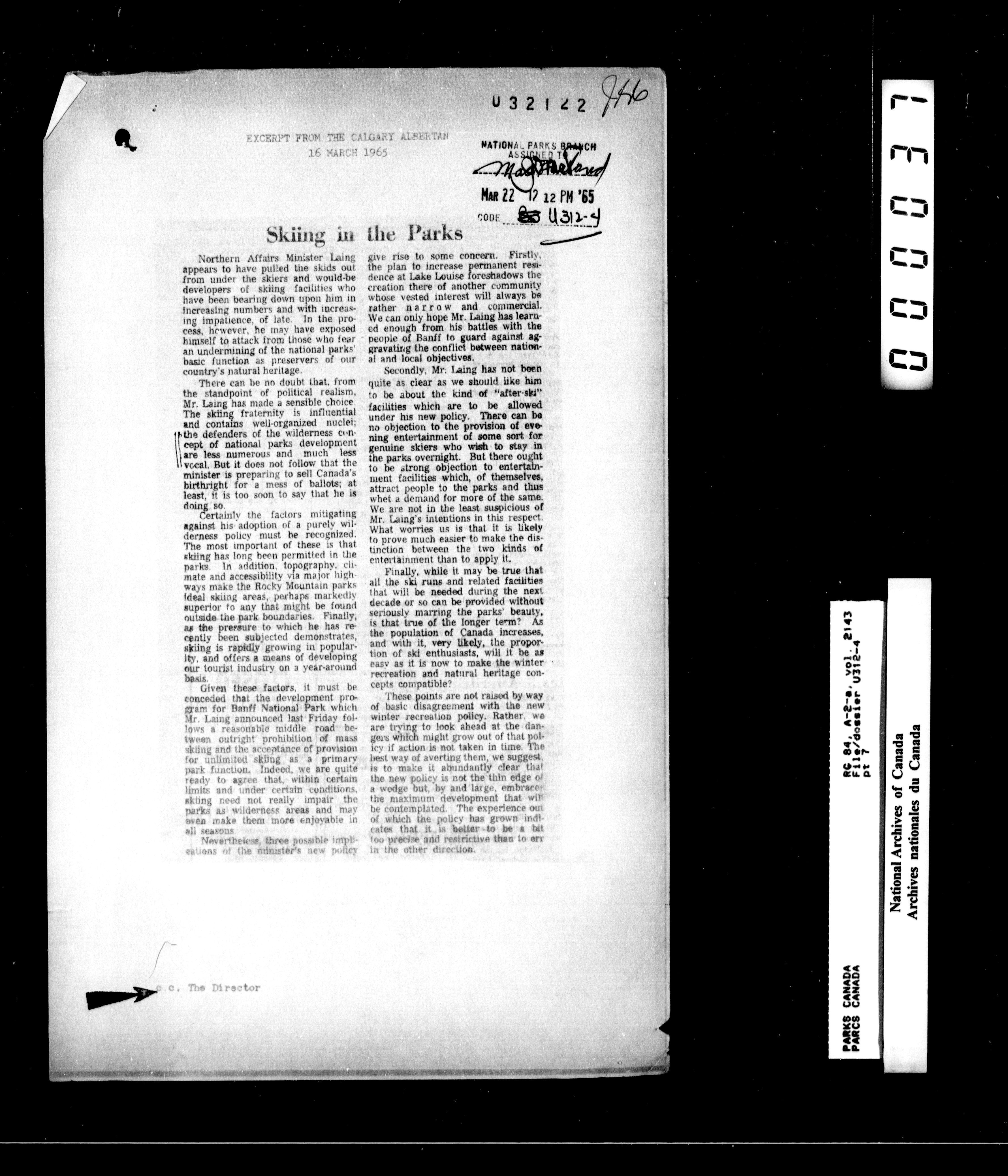 Department of Canadian Heritage, Canadian Parks Service : Park/subject classification system : T-16481