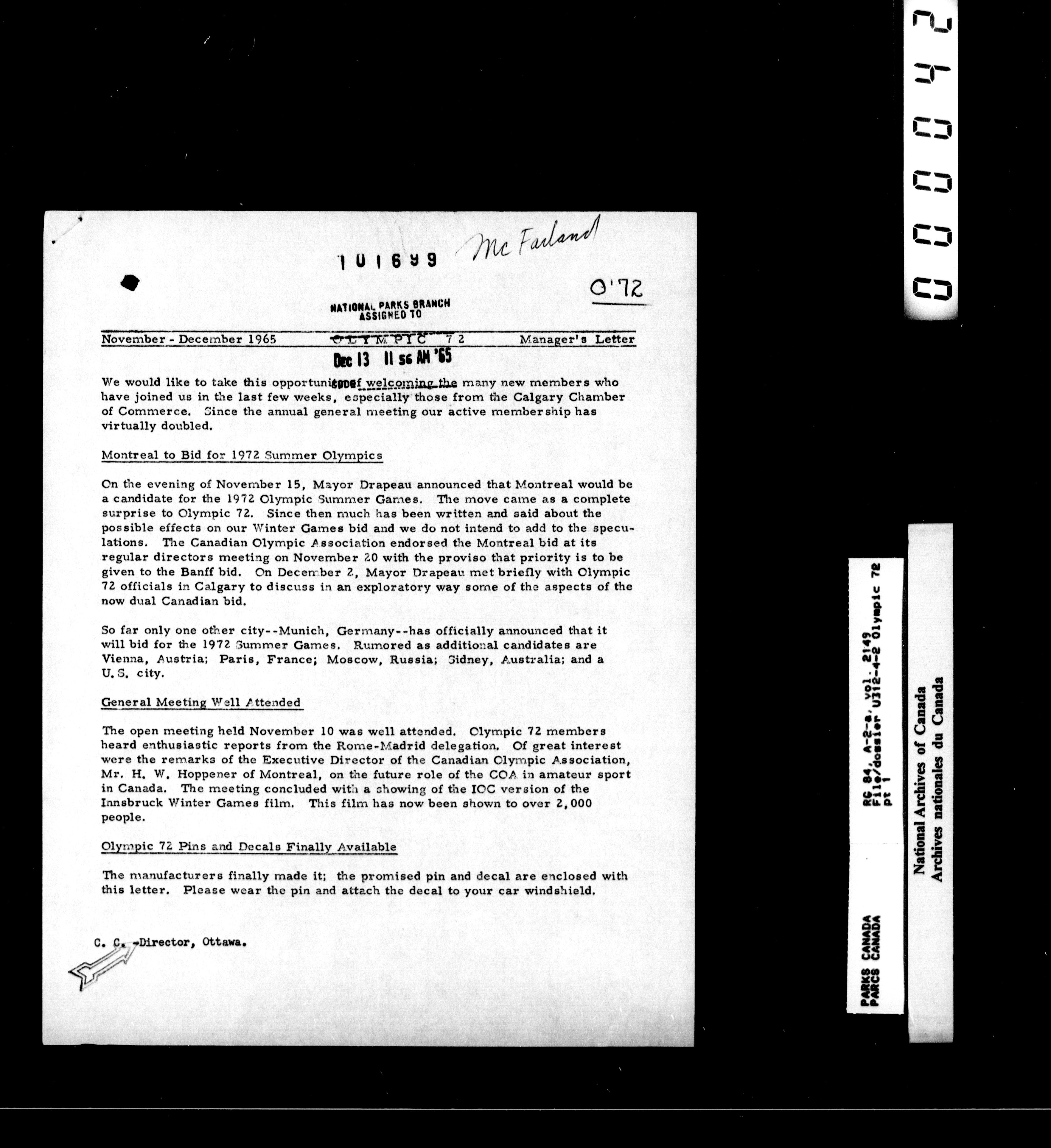 Department of Canadian Heritage, Canadian Parks Service : Park/subject classification system : T-16485