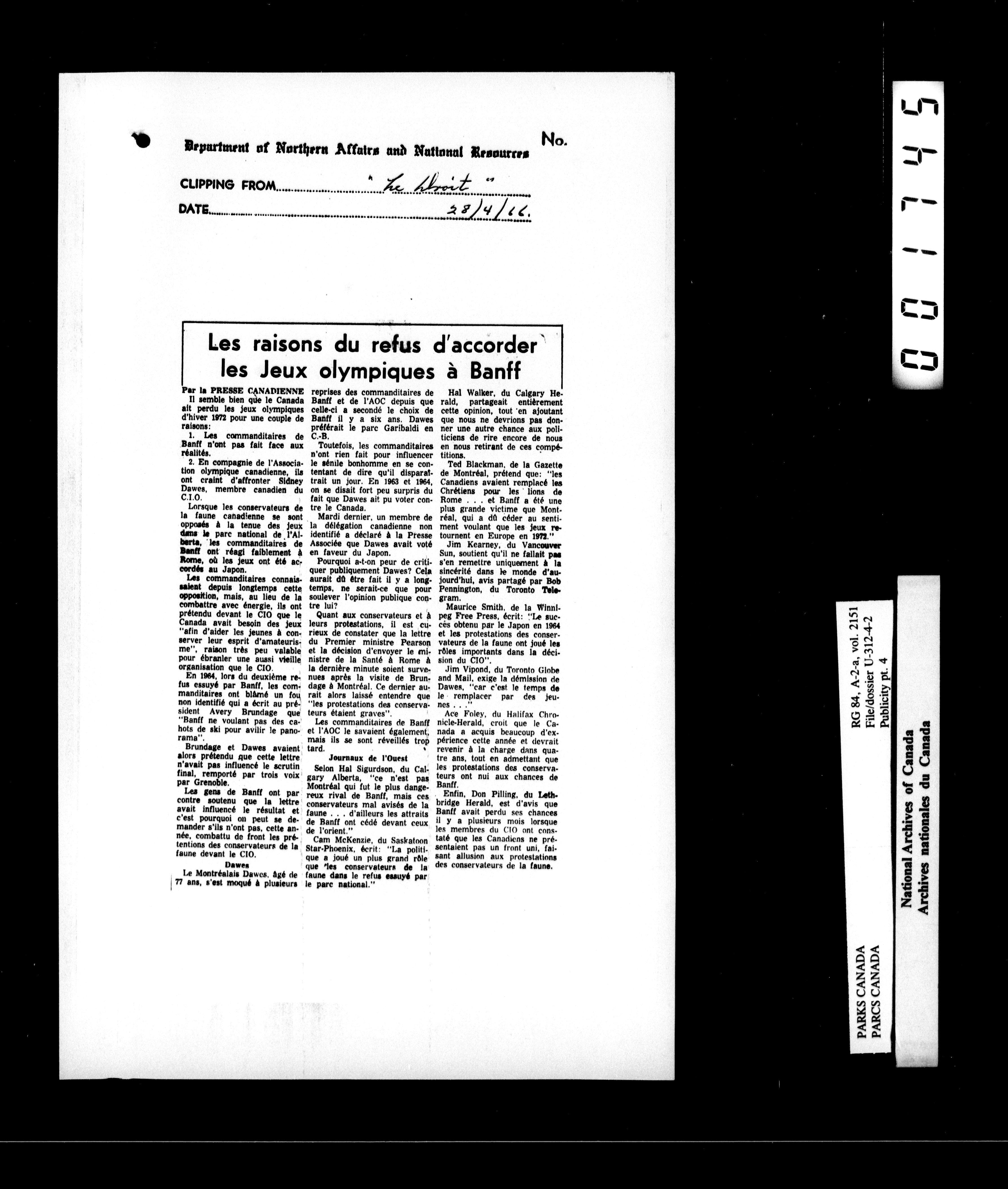 Department of Canadian Heritage, Canadian Parks Service : Park/subject classification system : T-16486