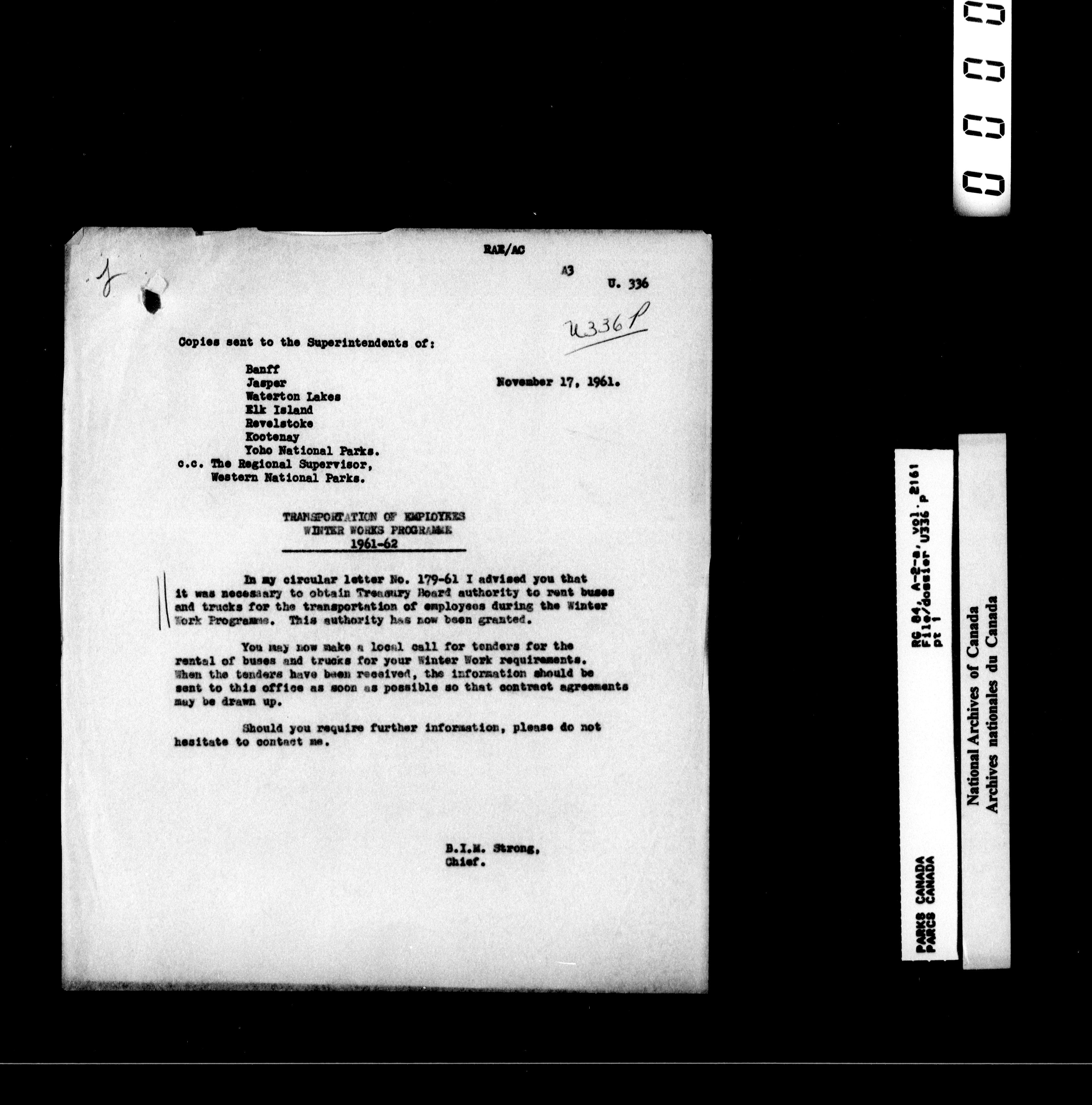 Department of Canadian Heritage, Canadian Parks Service : Park/subject classification system : T-16493