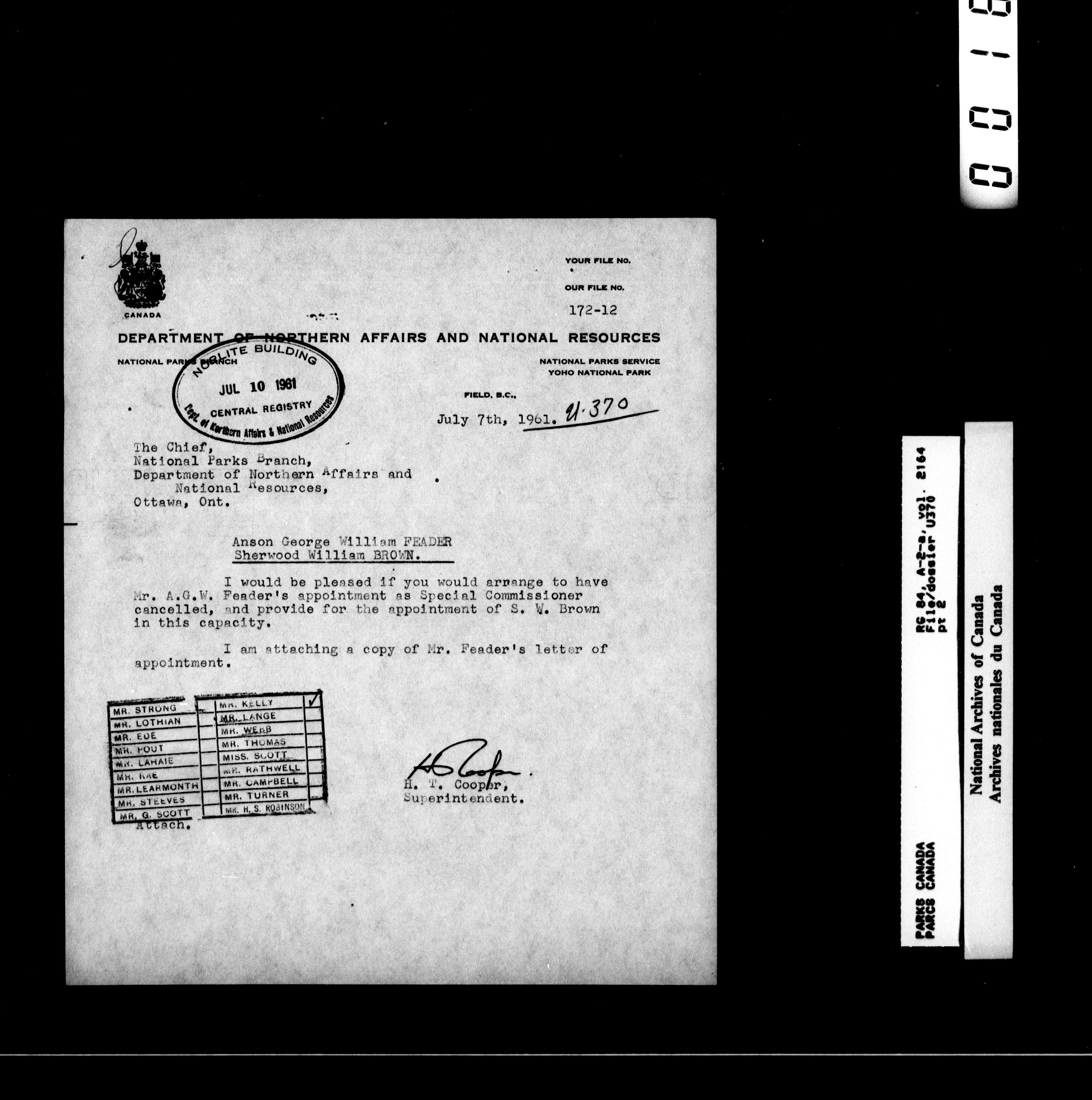 Department of Canadian Heritage, Canadian Parks Service : Park/subject classification system : T-16495