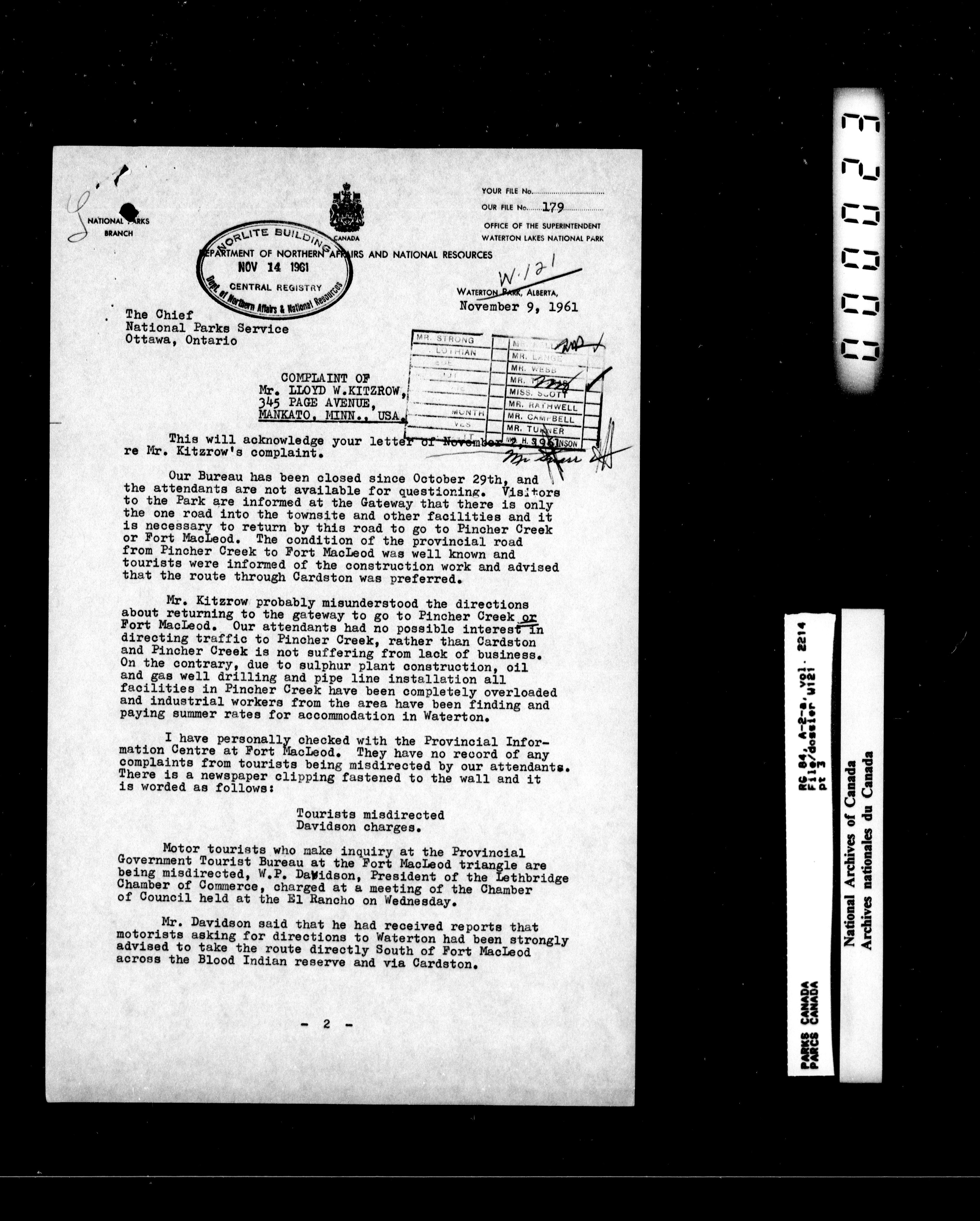 Department of Canadian Heritage, Canadian Parks Service : Park/subject classification system : T-16497