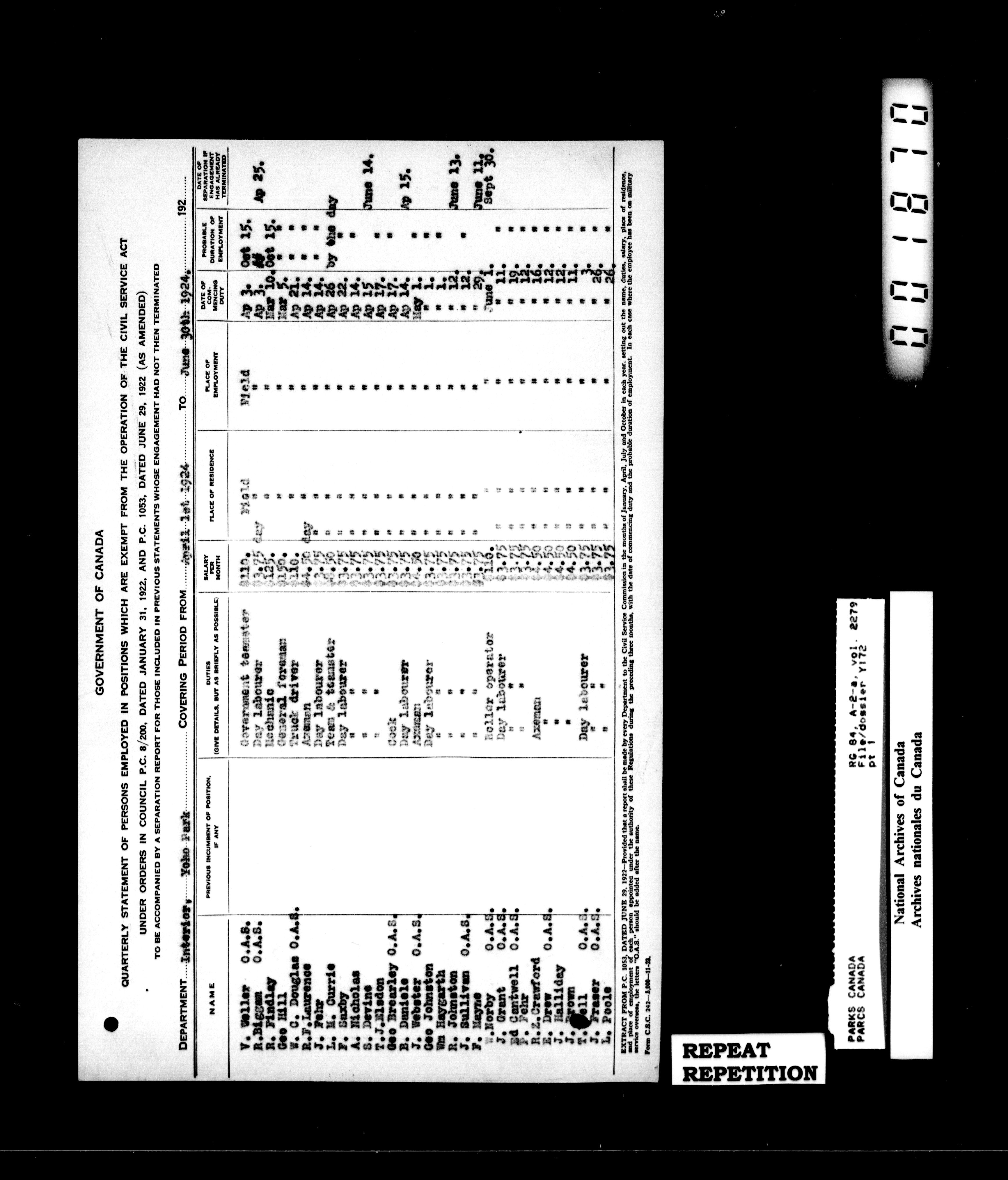 Department of Canadian Heritage, Canadian Parks Service : Park/subject classification system - 16513