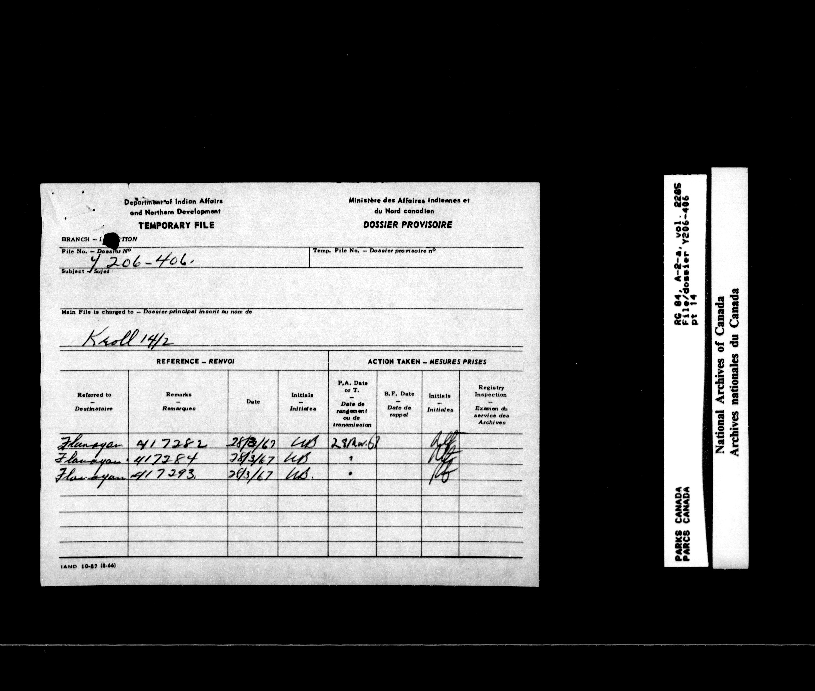 Department of Canadian Heritage, Canadian Parks Service : Park/subject classification system : T-16517