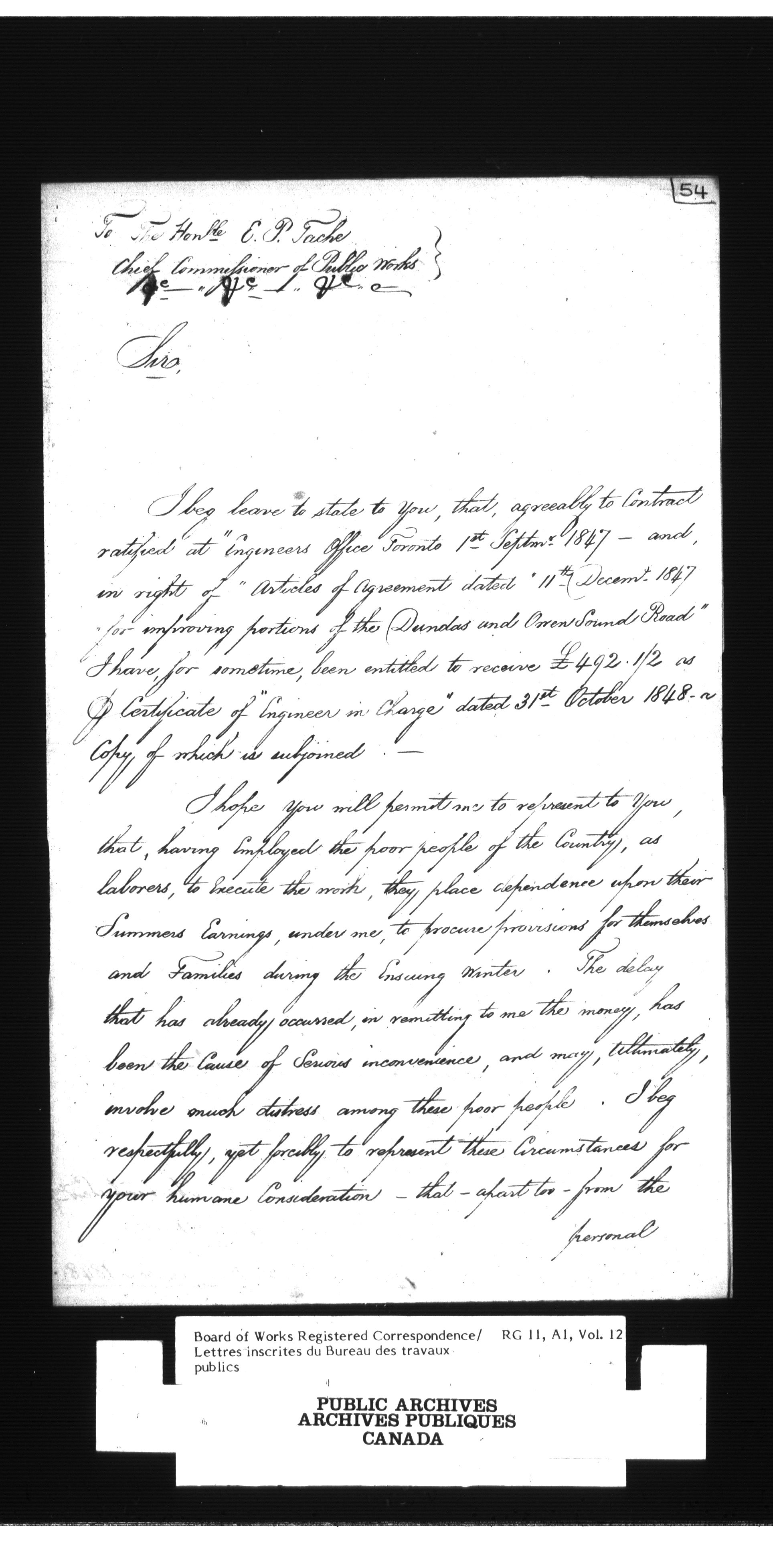 Department of Public Works, Board of Works : Official registered correspondence, 1842-1860 - 1652
