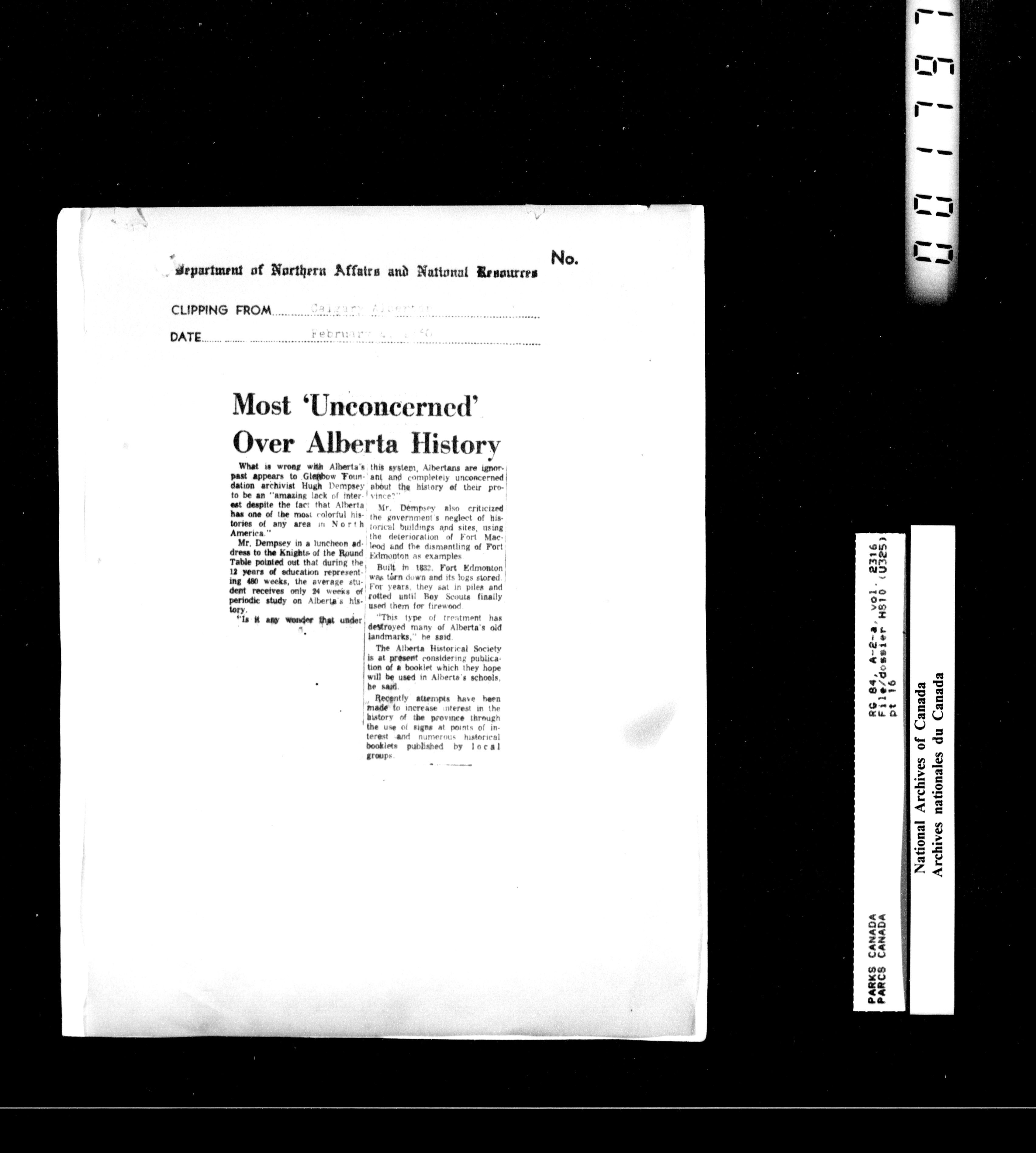 Department of Canadian Heritage, Canadian Parks Service : Park/subject classification system - 16522