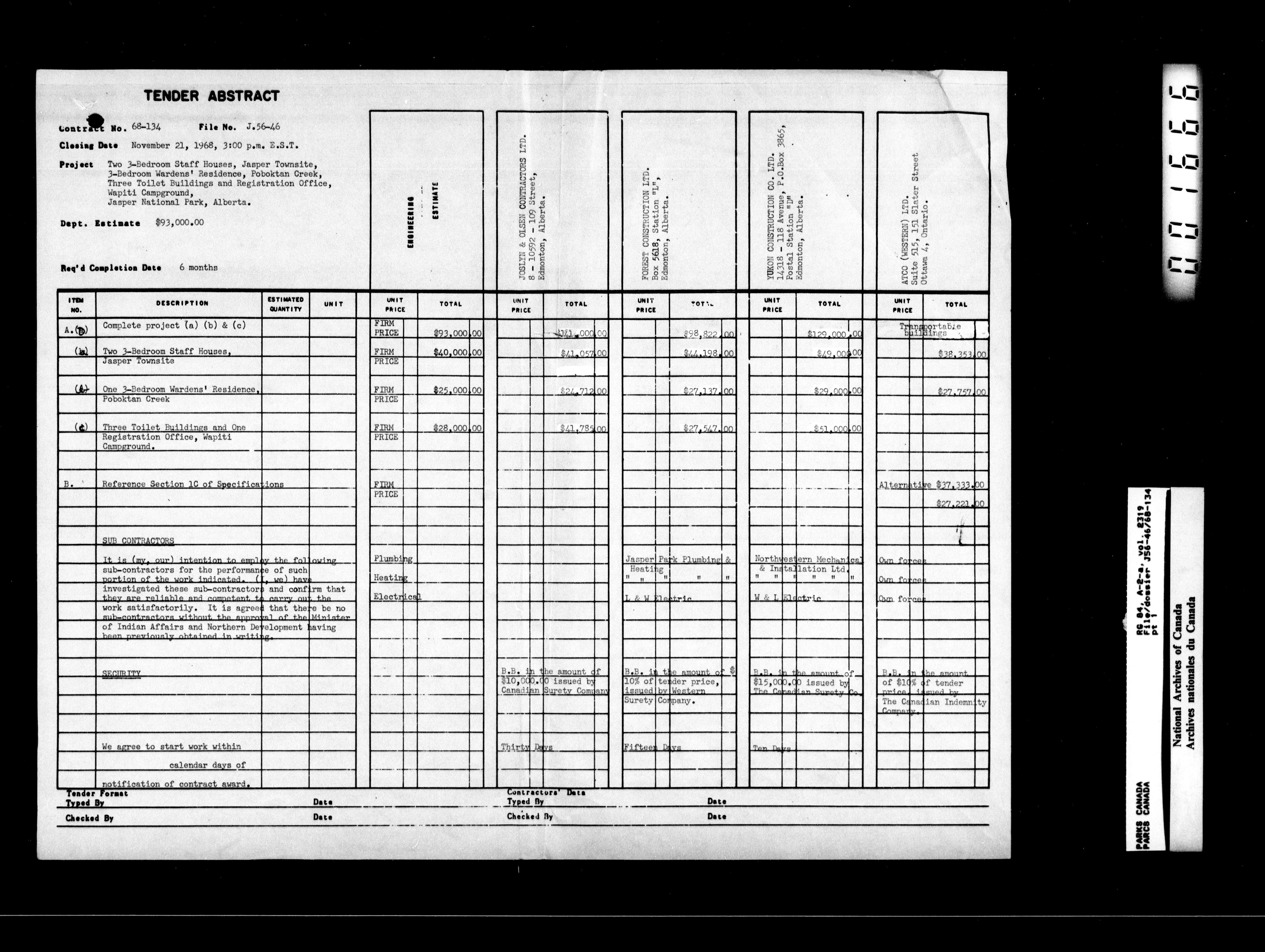 Department of Canadian Heritage, Canadian Parks Service : Park/subject classification system : T-16524