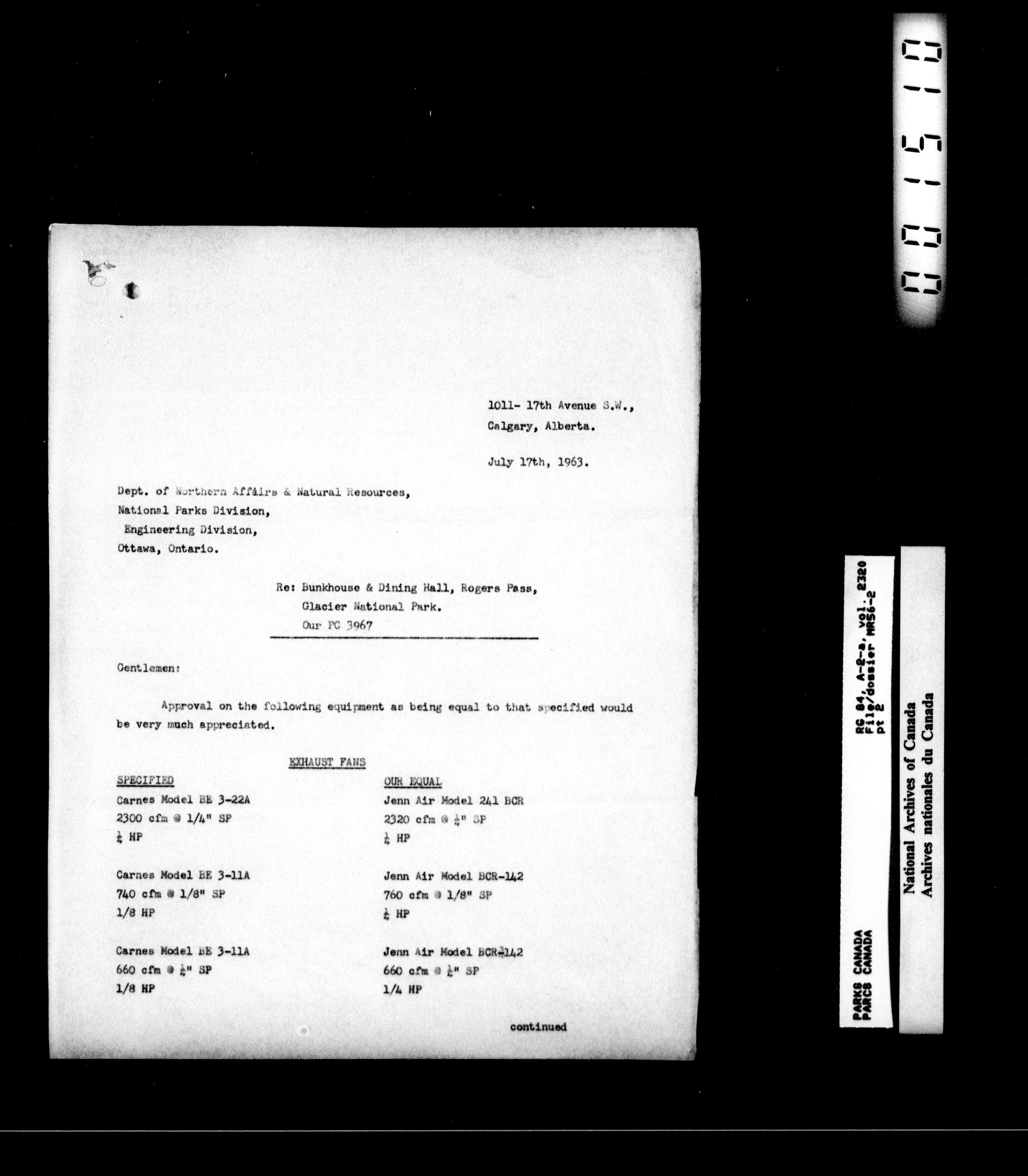 Department of Canadian Heritage, Canadian Parks Service : Park/subject classification system - 16525