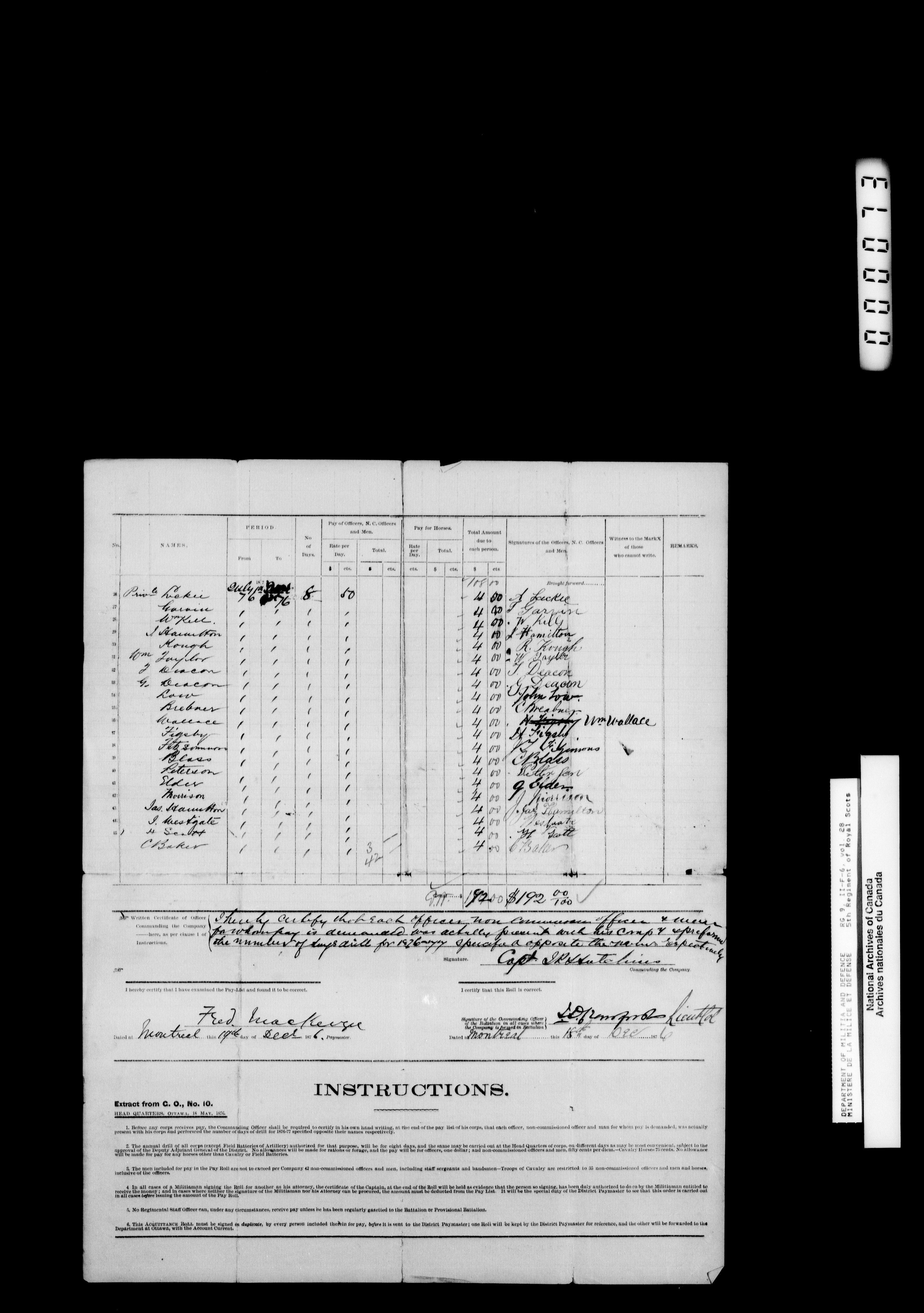 Nominal rolls and paylists for the Volunteer Militia 1855-1914 - 16549