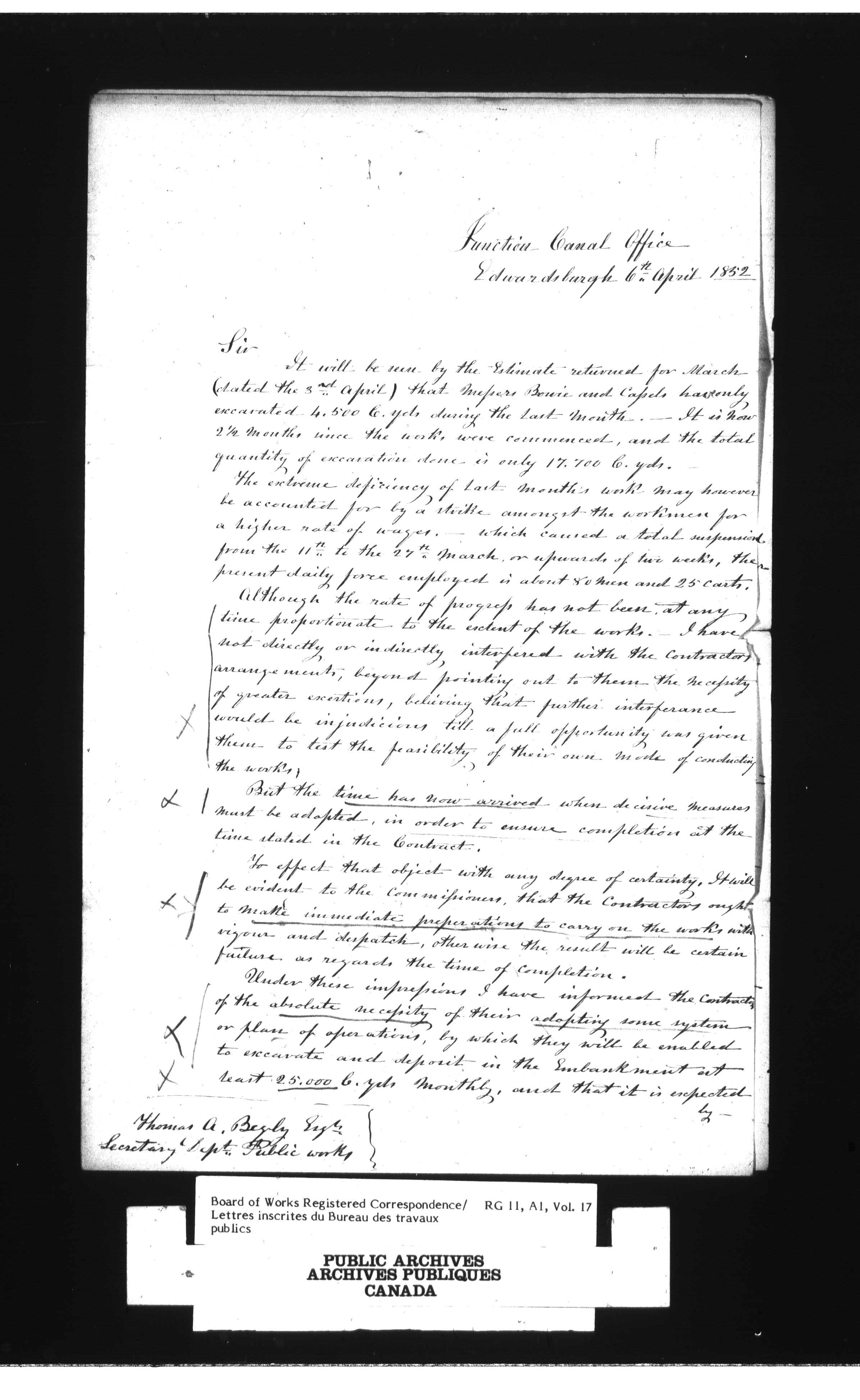Department of Public Works, Board of Works records, official correspondence : Registered correspondence, 1842-1860 : T-1658