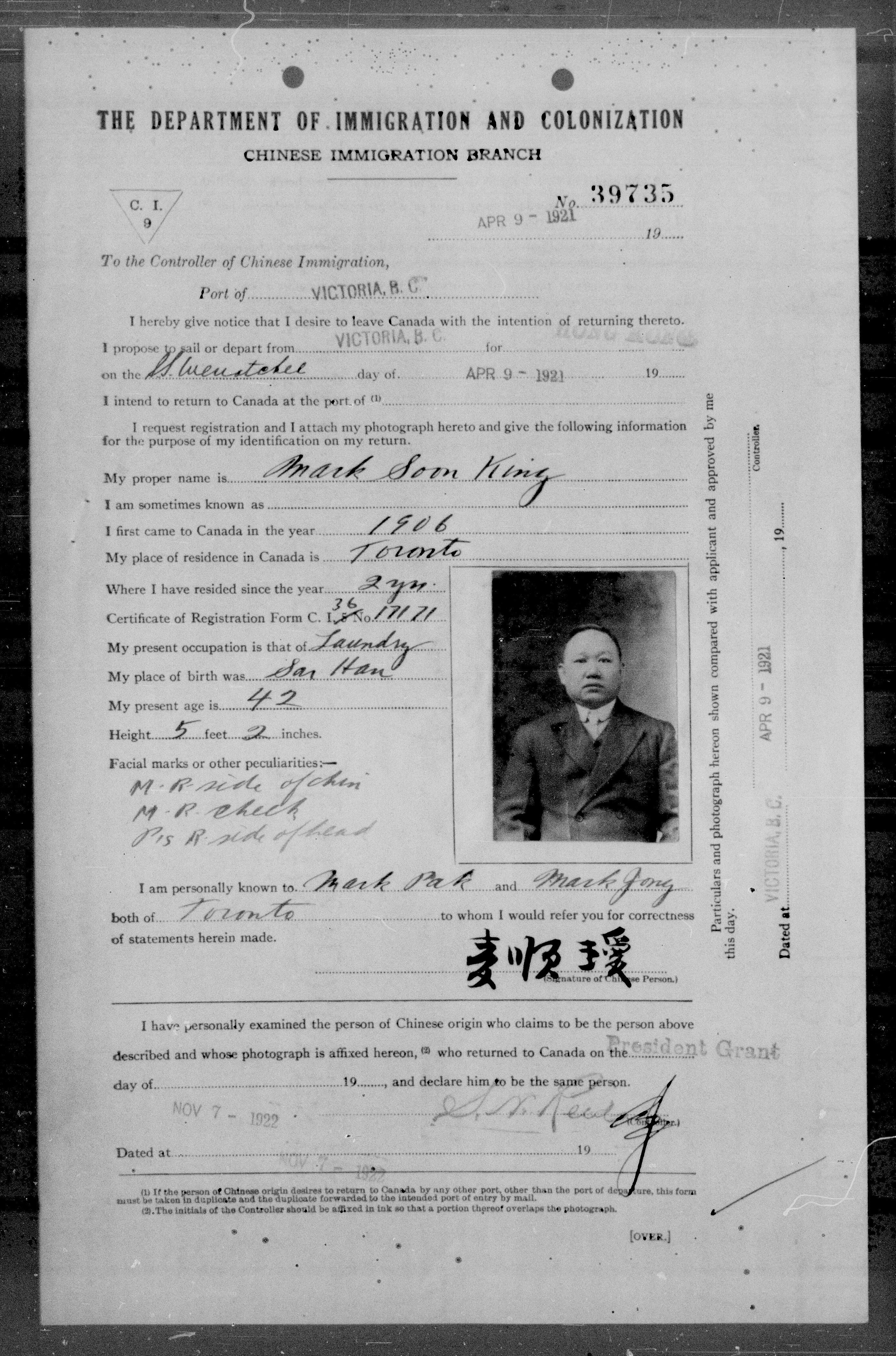 Chinese immigration records : C.I.9 certificates from Vancouver and Victoria