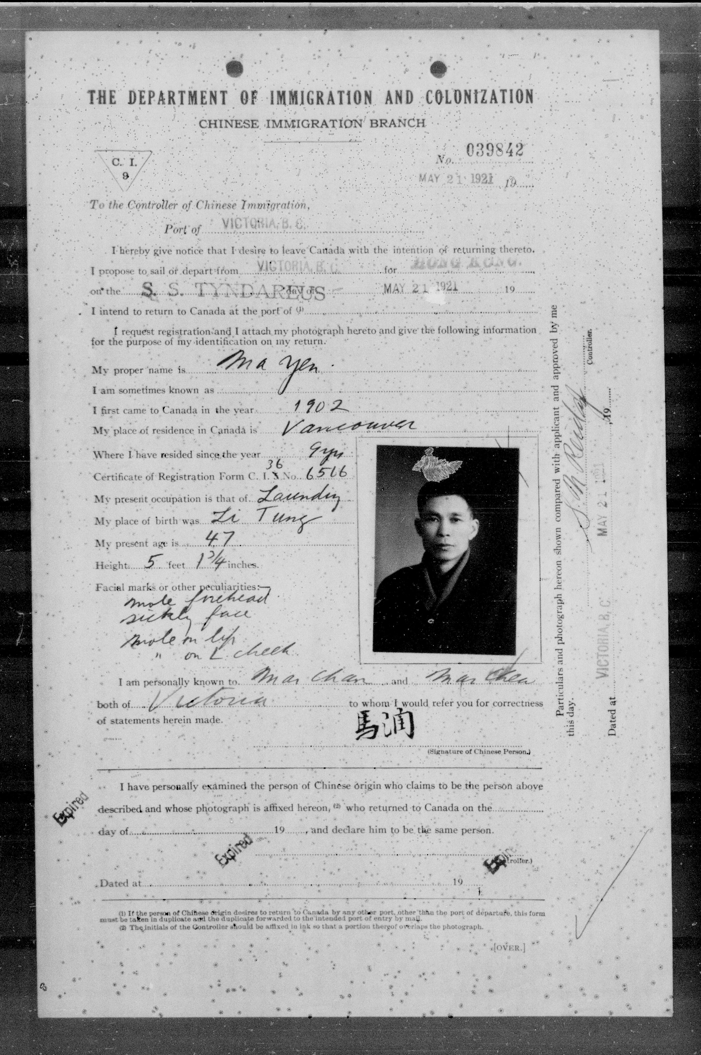 Chinese immigration records : C.I.9 certificates from Vancouver and Victoria