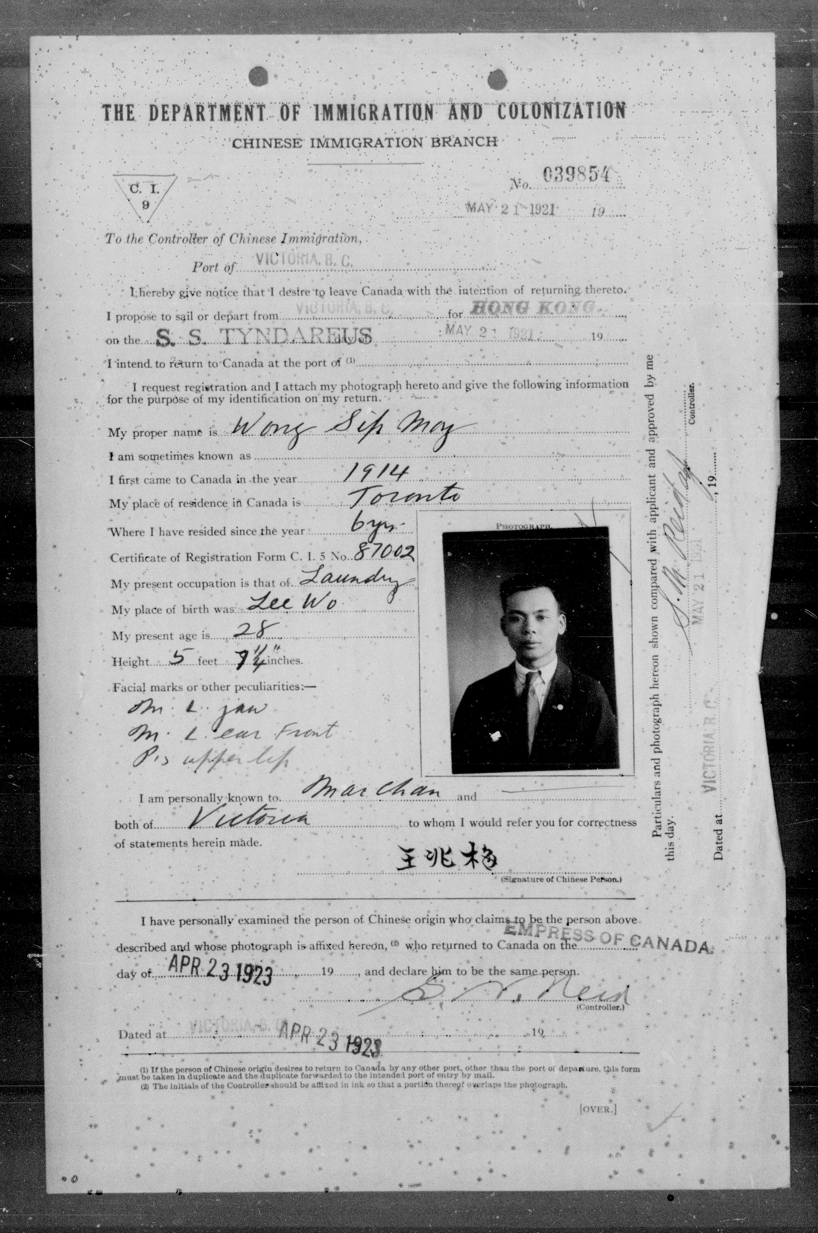 Chinese immigration records : C.I.9 certificates from Vancouver and Victoria