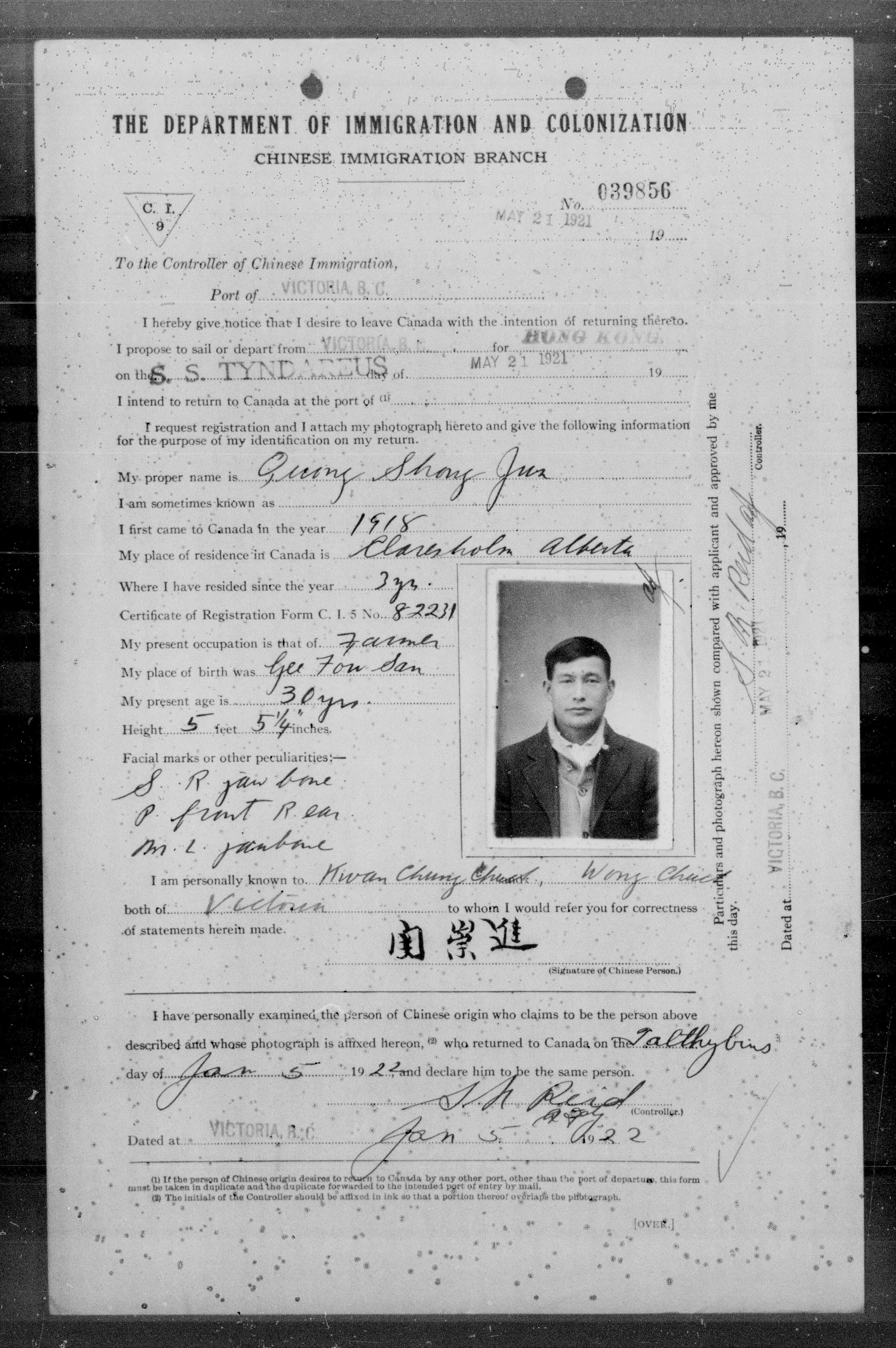 Chinese immigration records : C.I.9 certificates from Vancouver and Victoria