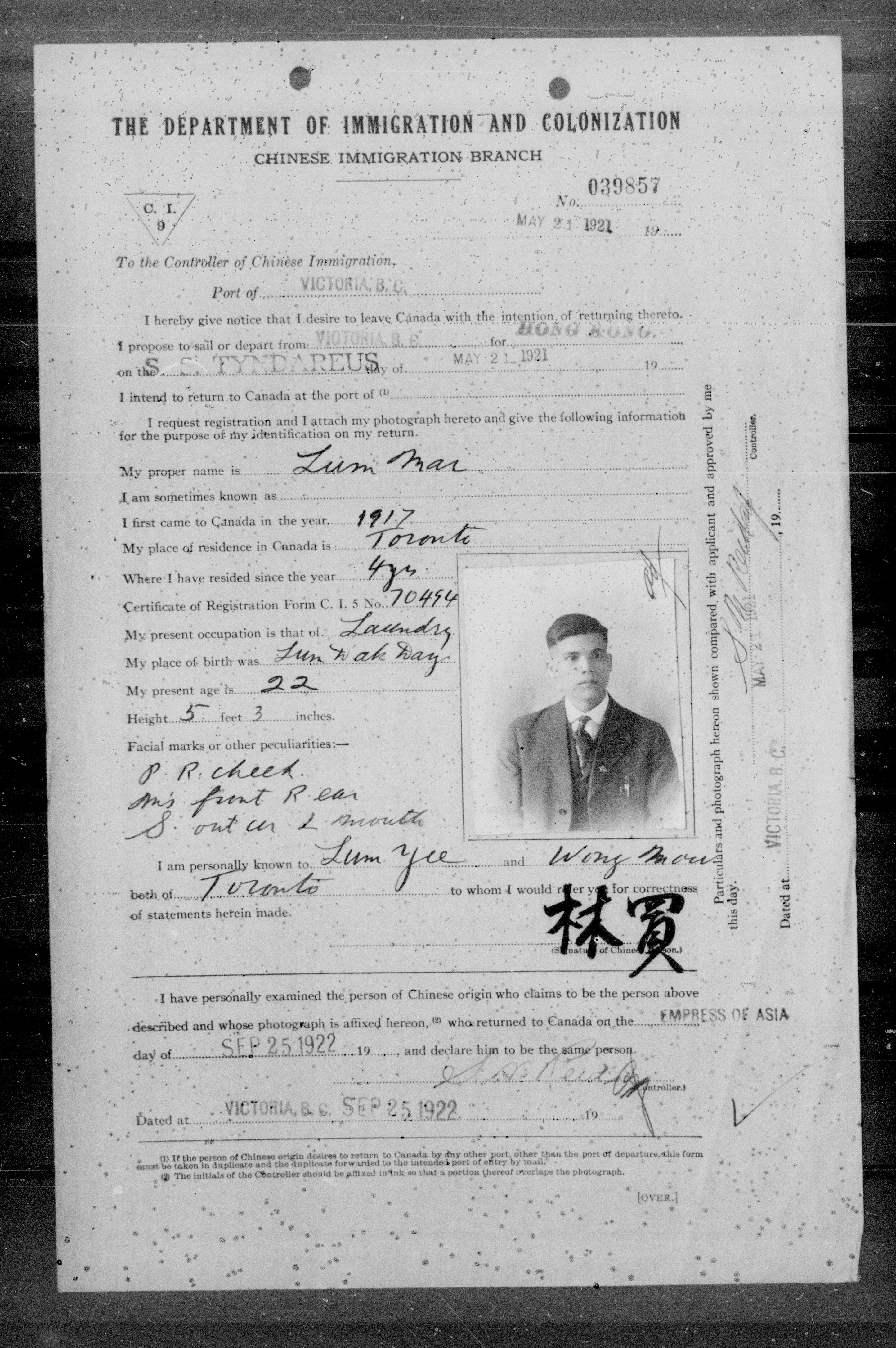 Chinese immigration records : C.I.9 certificates from Vancouver and Victoria