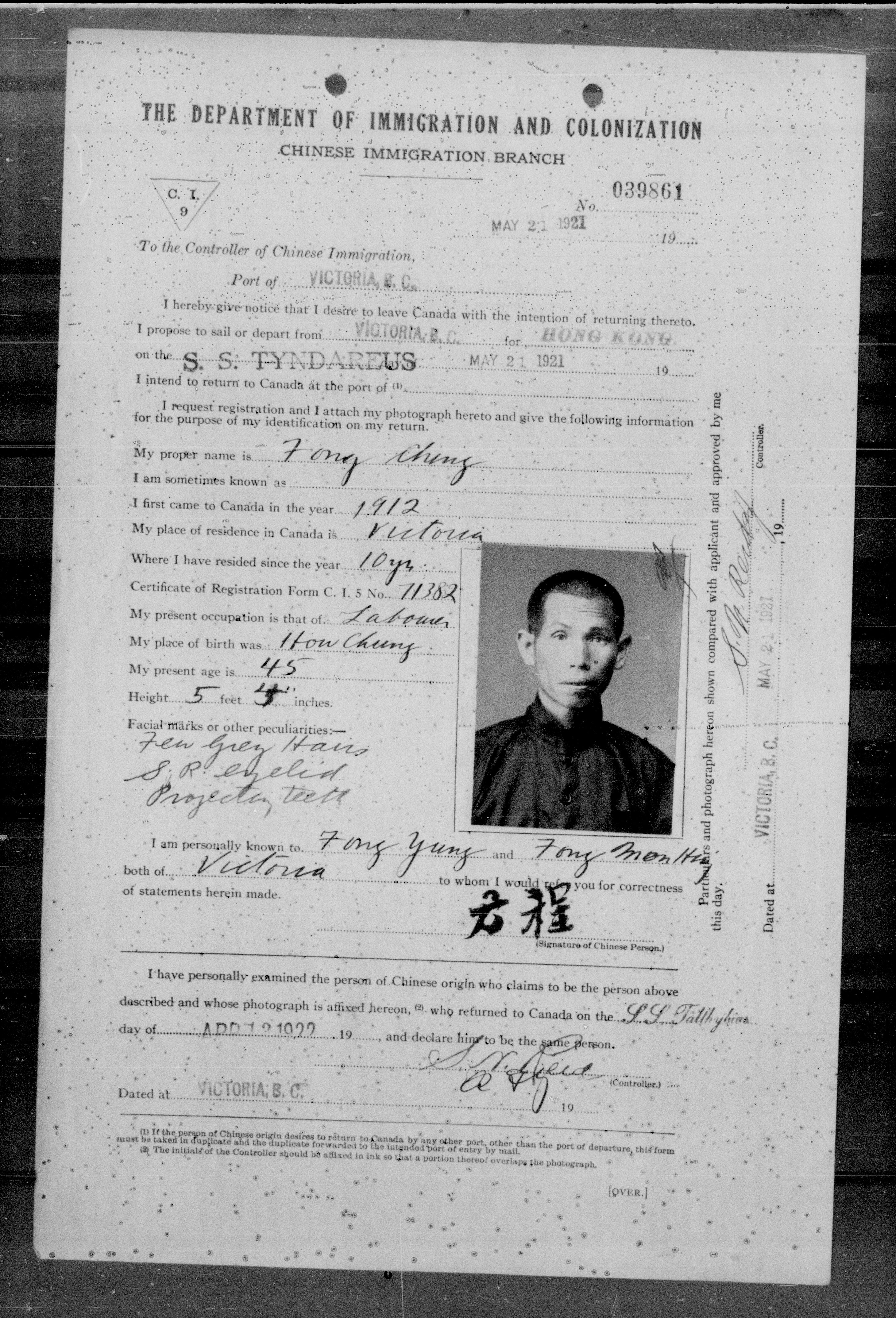 Chinese immigration records : C.I.9 certificates from Vancouver and Victoria