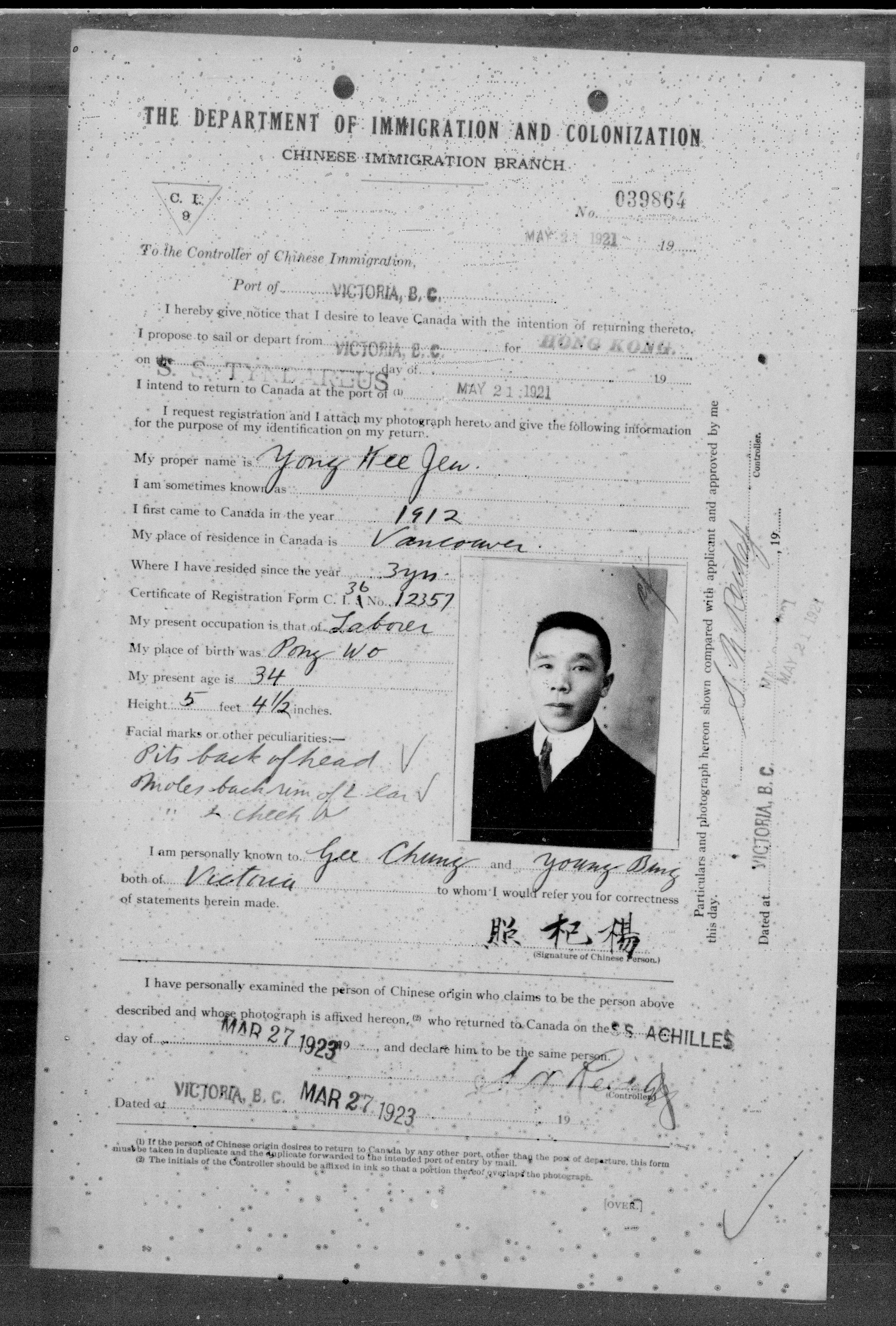 Chinese immigration records : C.I.9 certificates from Vancouver and Victoria
