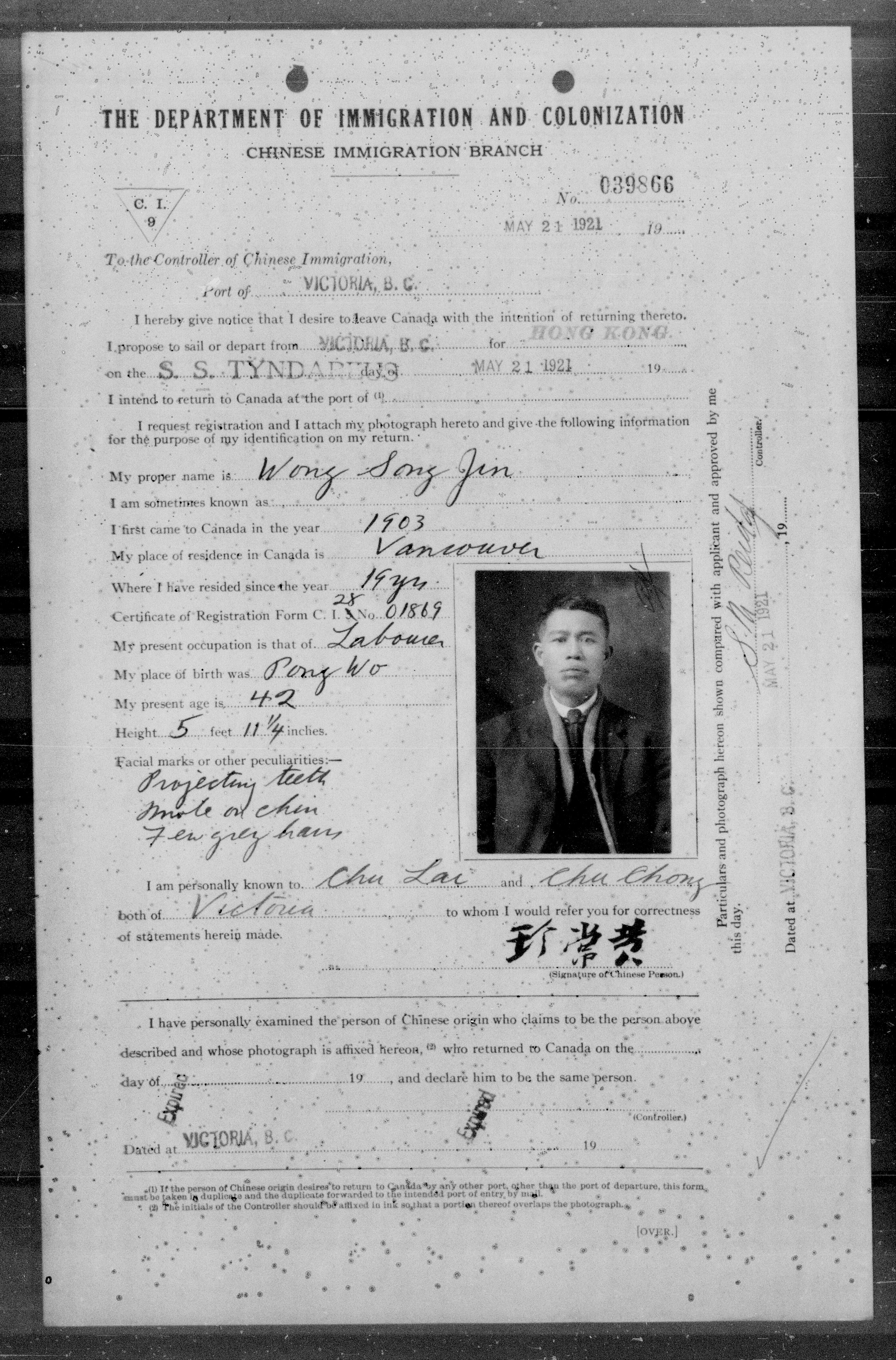 Chinese immigration records : C.I.9 certificates from Vancouver and Victoria
