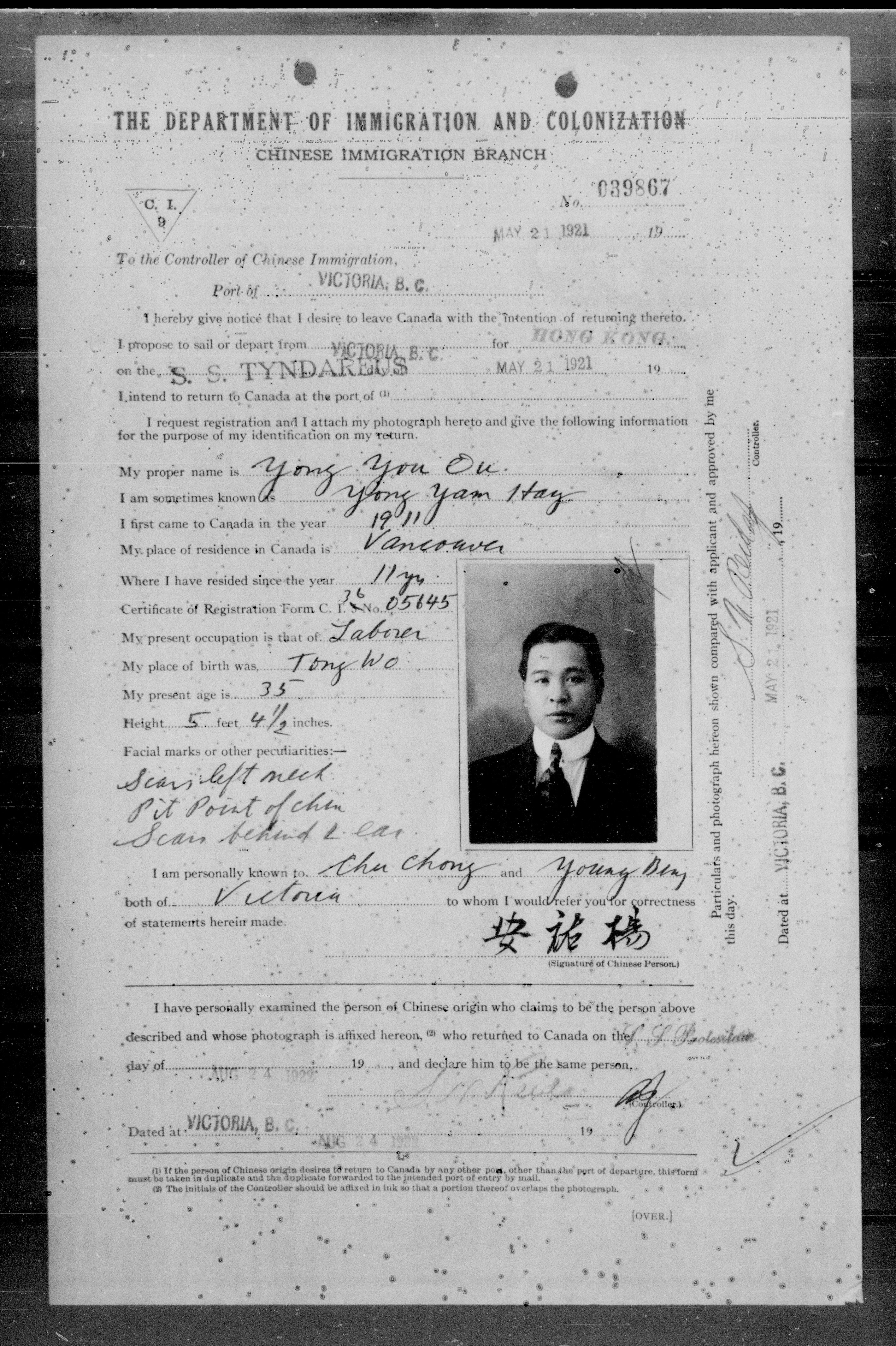 Chinese immigration records : C.I.9 certificates from Vancouver and Victoria