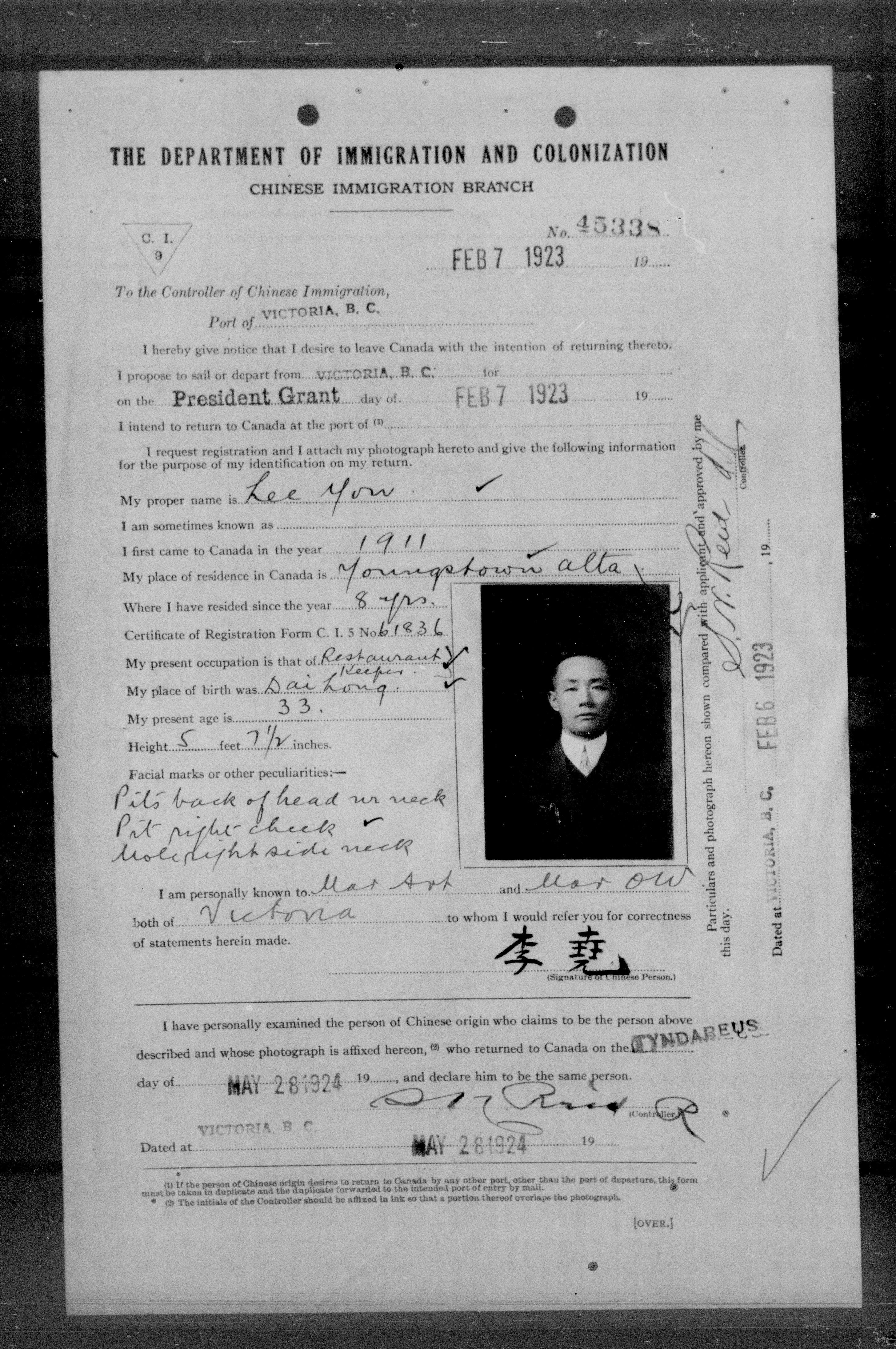 Chinese immigration records : C.I.9 certificates from Vancouver and Victoria