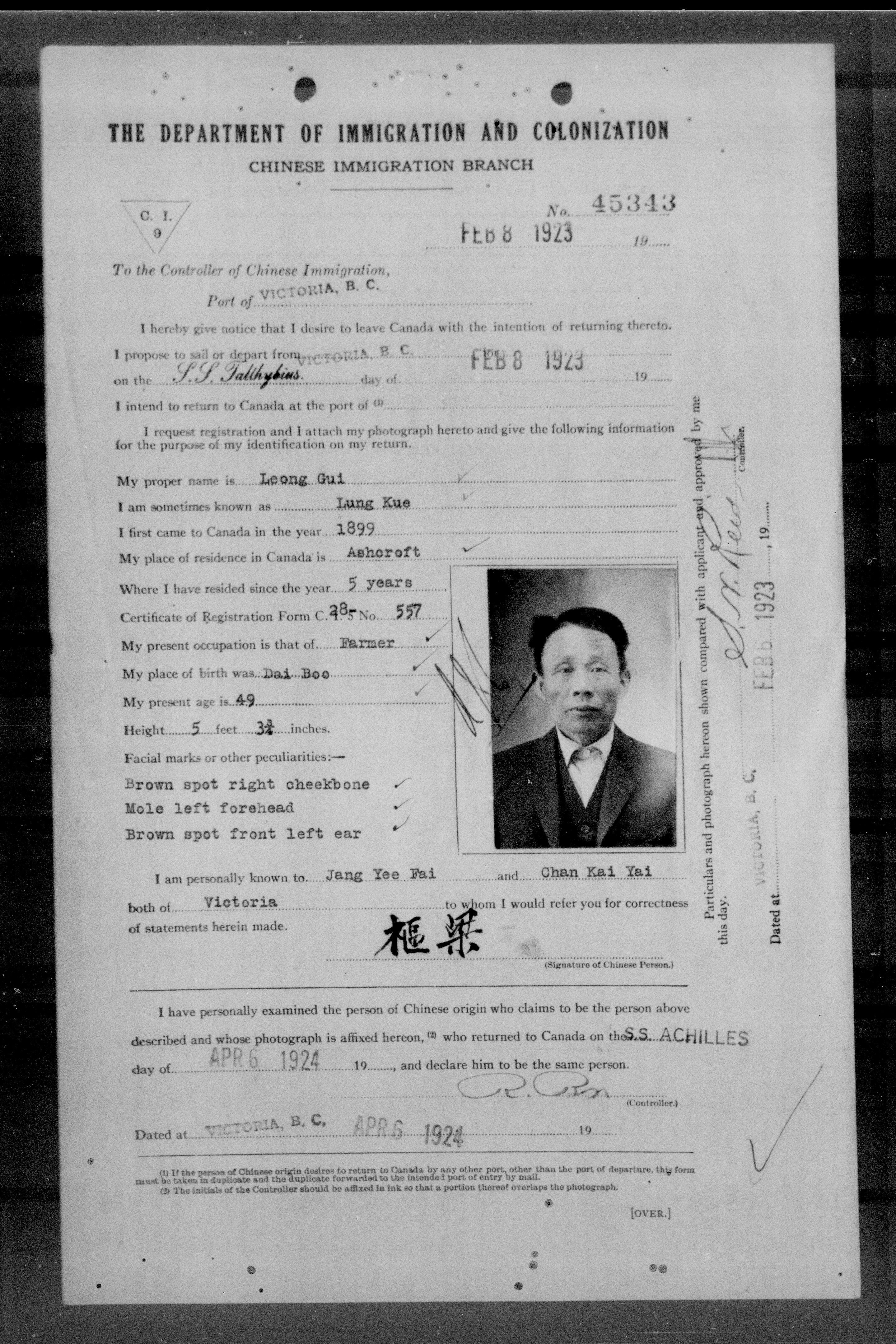 Chinese immigration records : C.I.9 certificates from Vancouver and Victoria