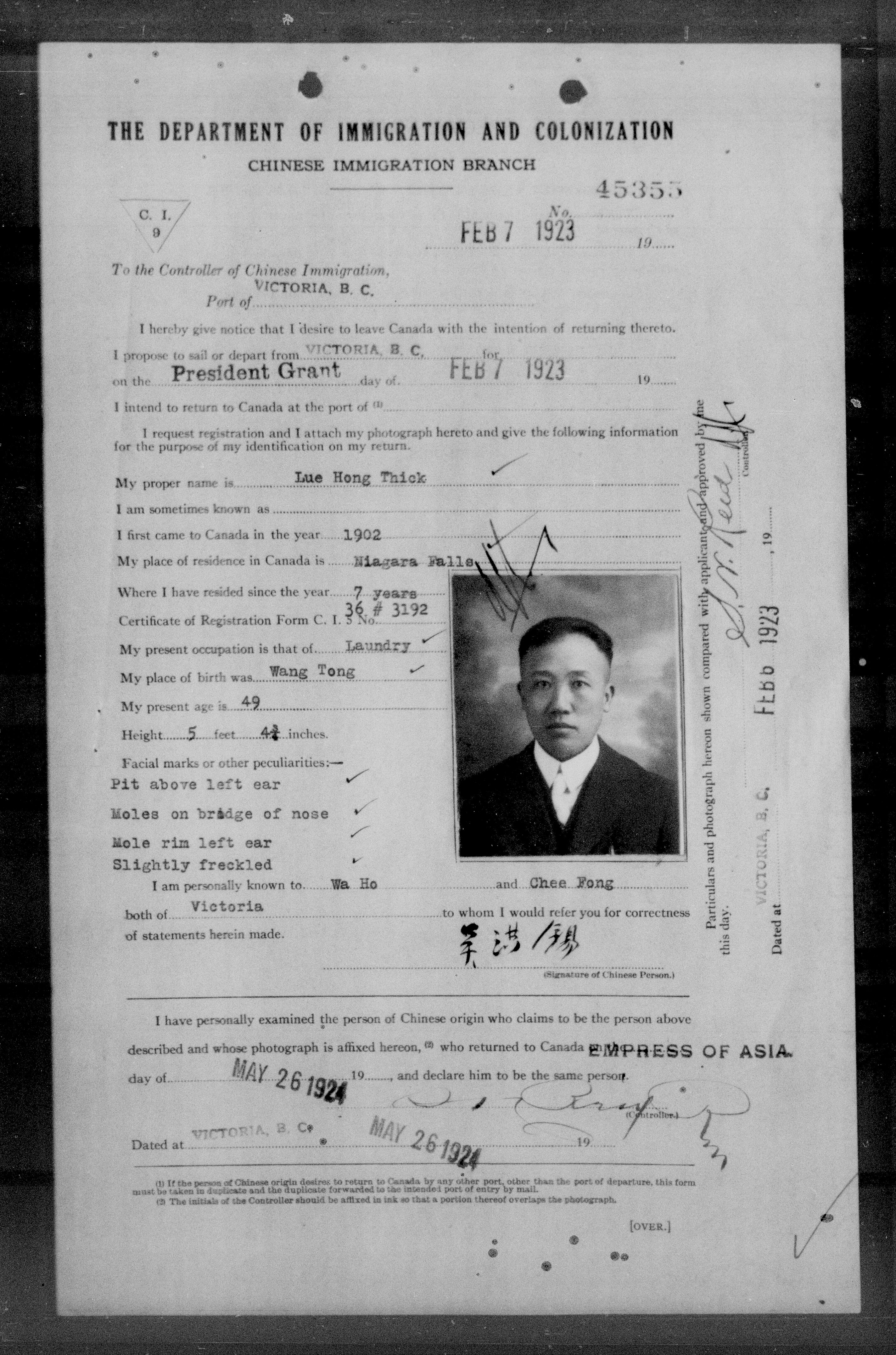 Chinese immigration records : C.I.9 certificates from Vancouver and Victoria