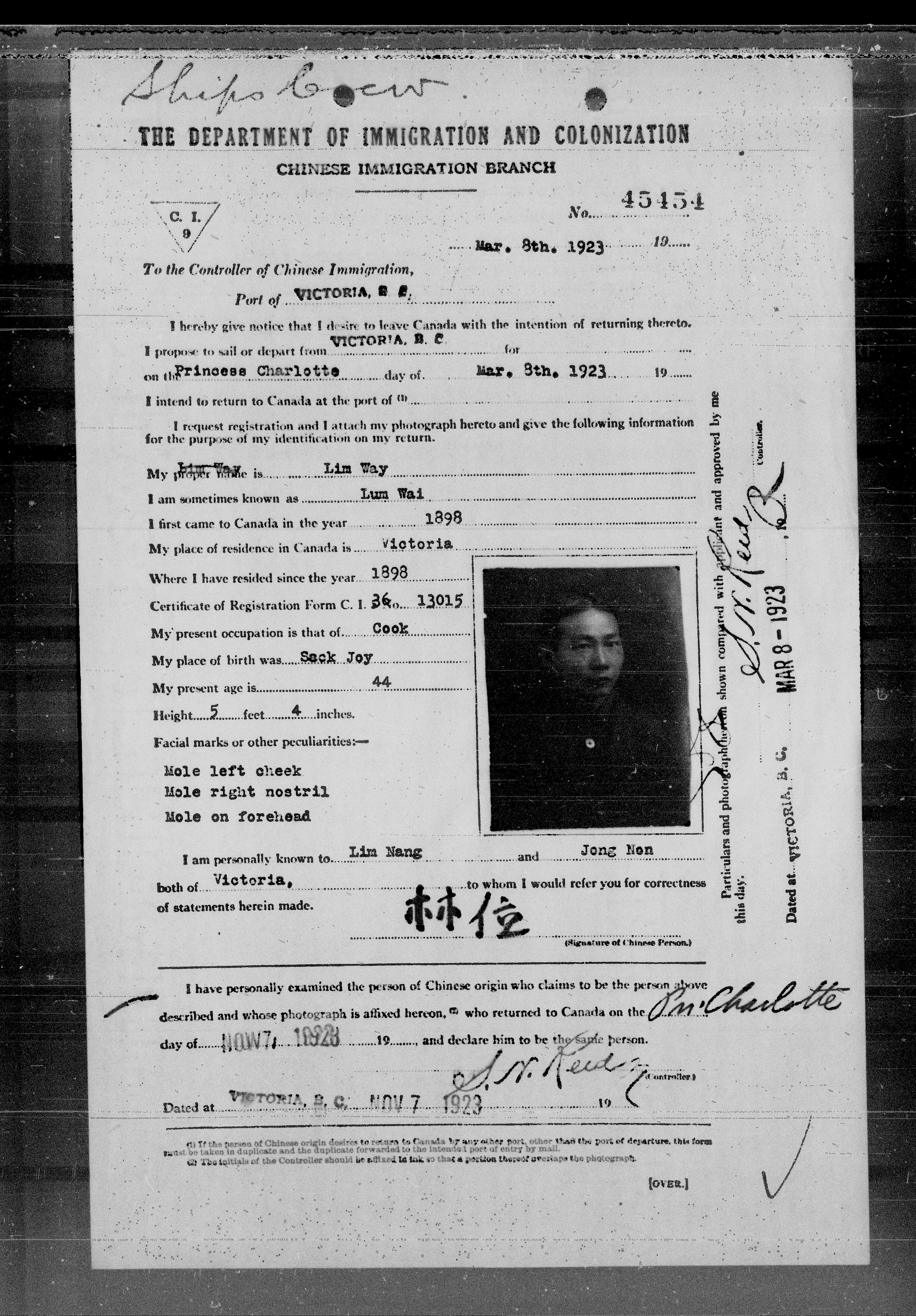 Chinese immigration records : C.I.9 certificates from Vancouver and Victoria