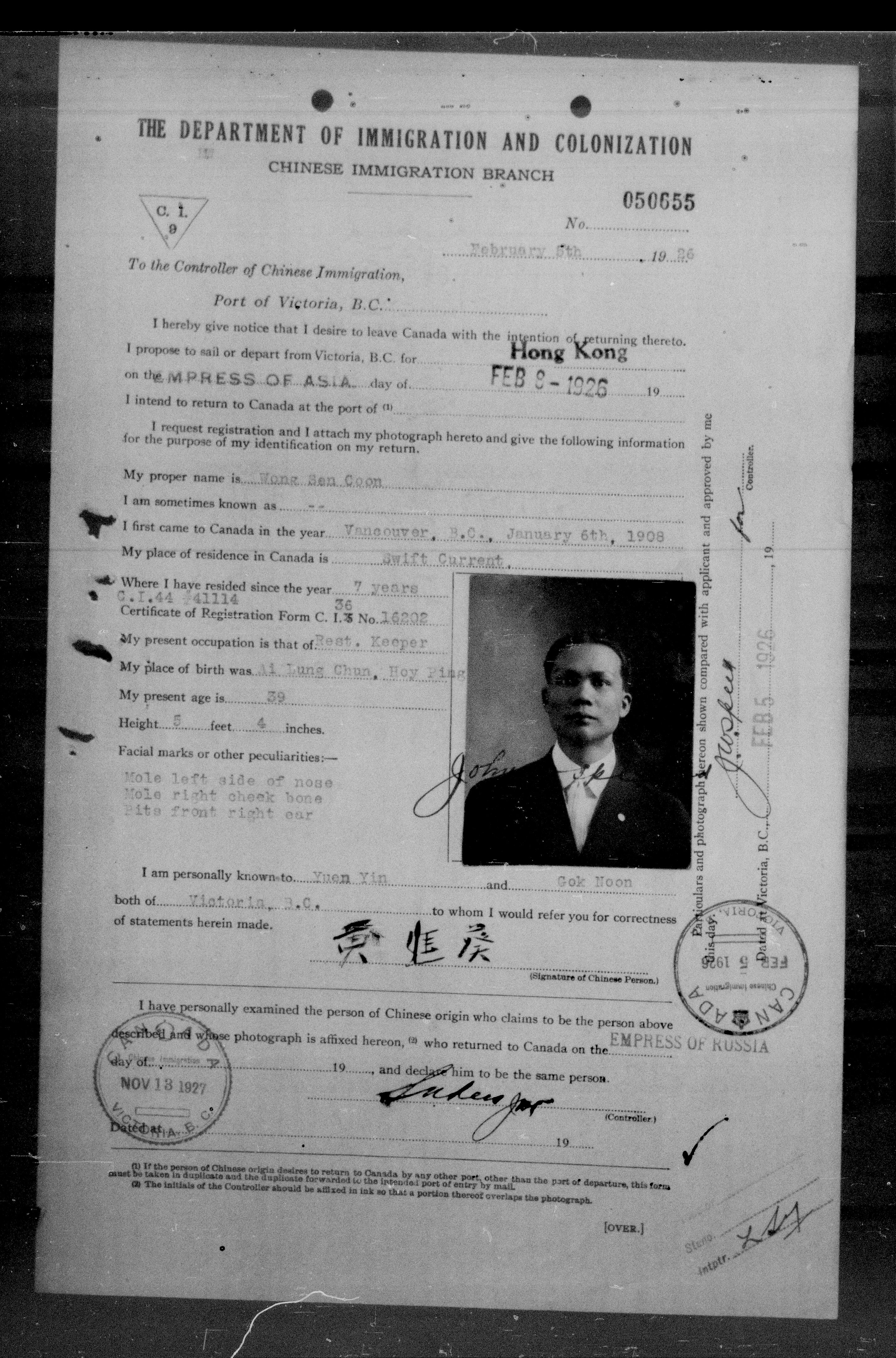 Chinese immigration records : C.I.9 certificates from Vancouver and Victoria