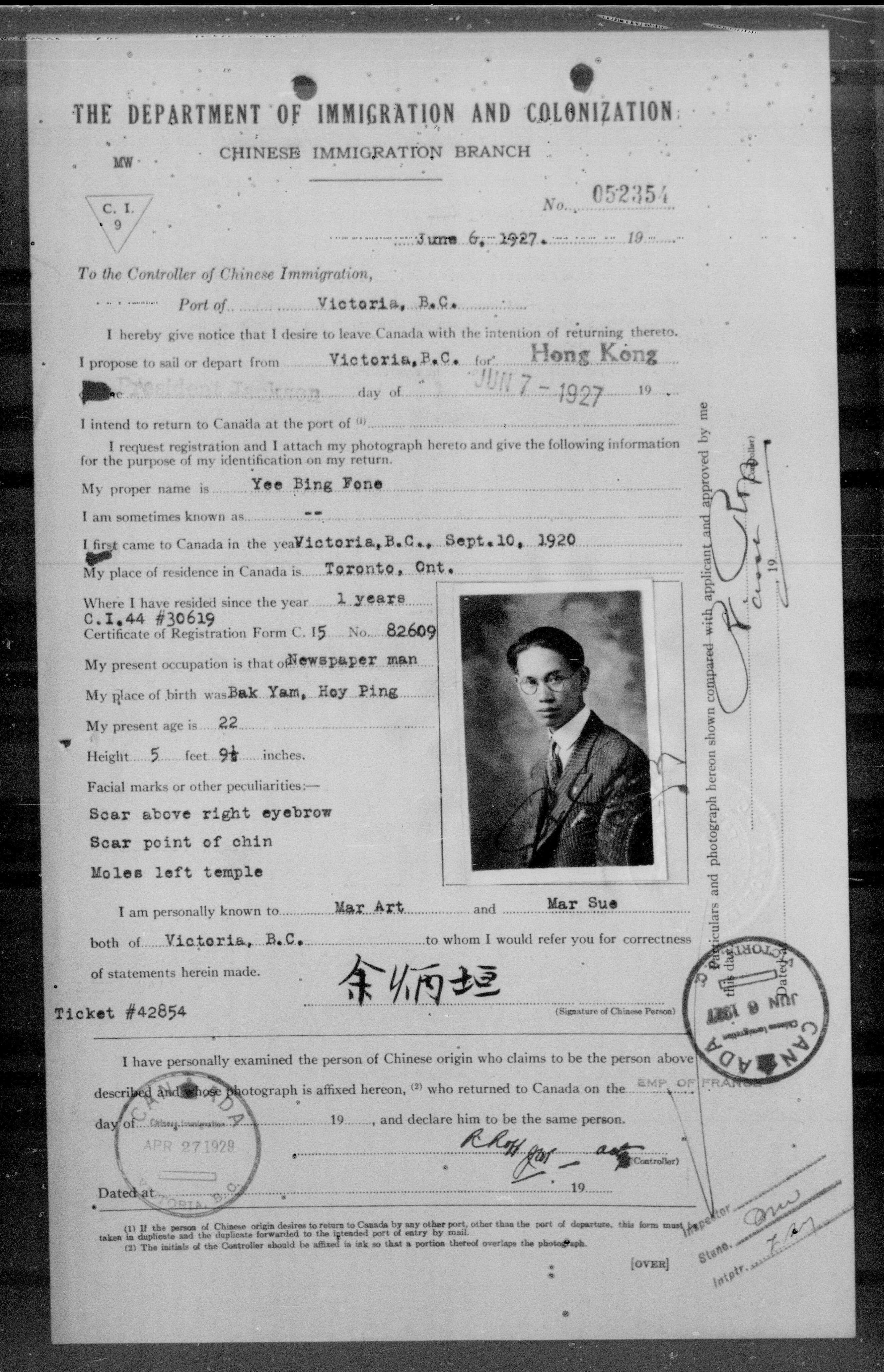 Chinese immigration records : C.I.9 certificates from Vancouver and Victoria