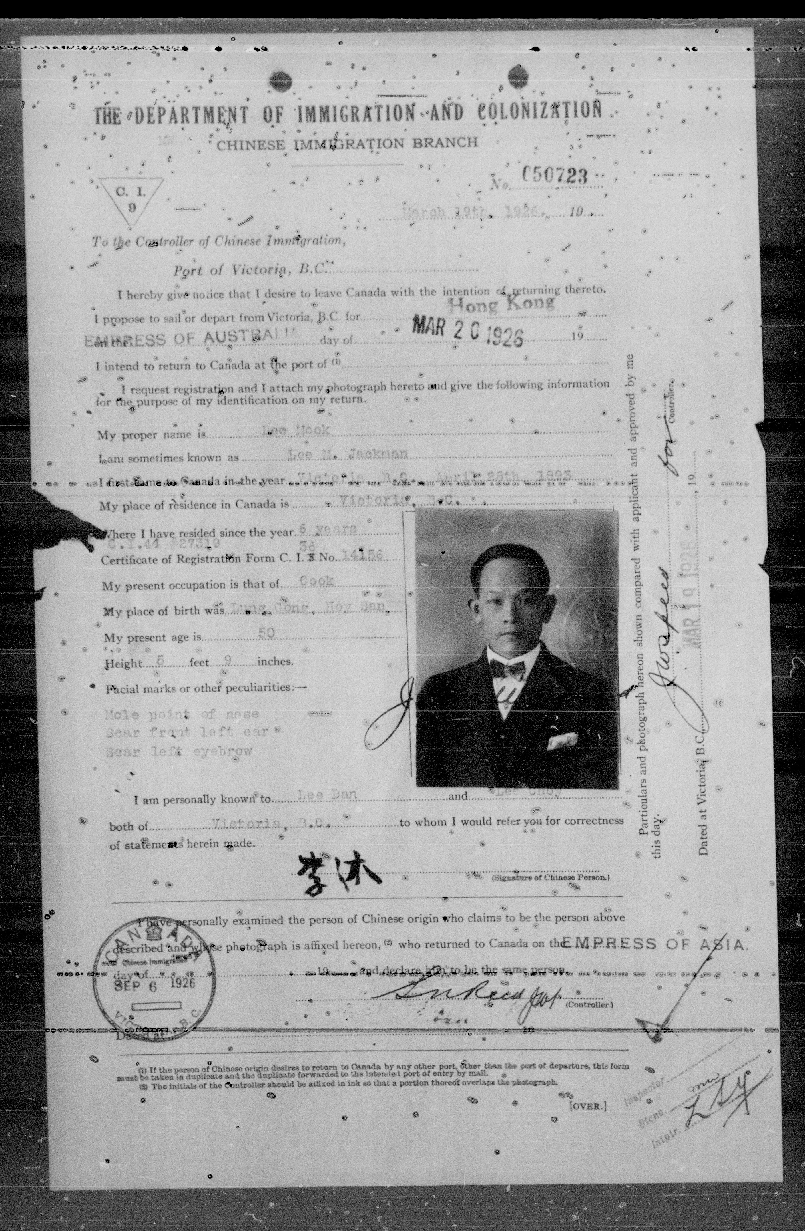 Chinese immigration records : C.I.9 certificates from Vancouver and Victoria