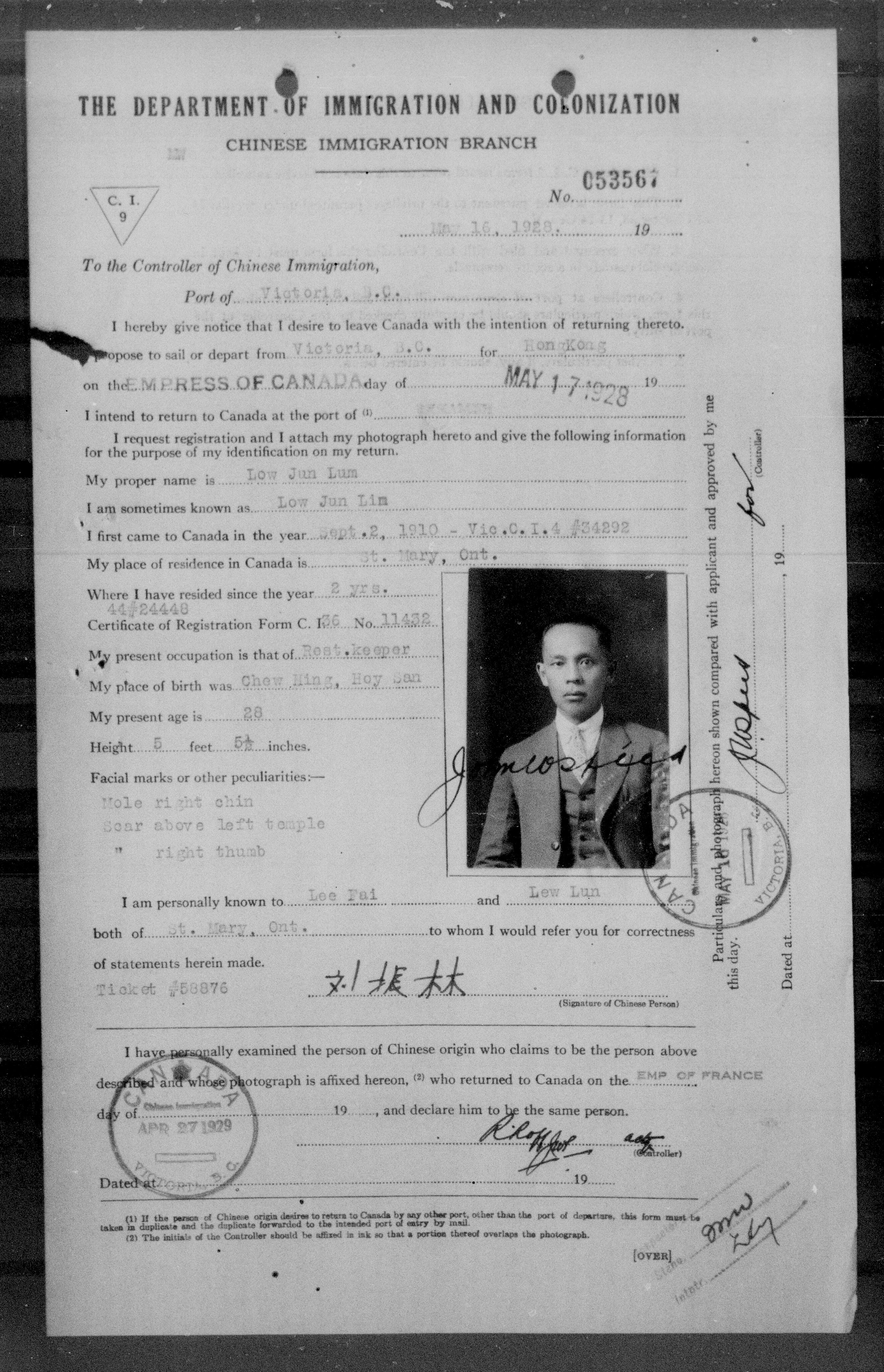 Chinese immigration records : C.I.9 certificates from Vancouver and Victoria