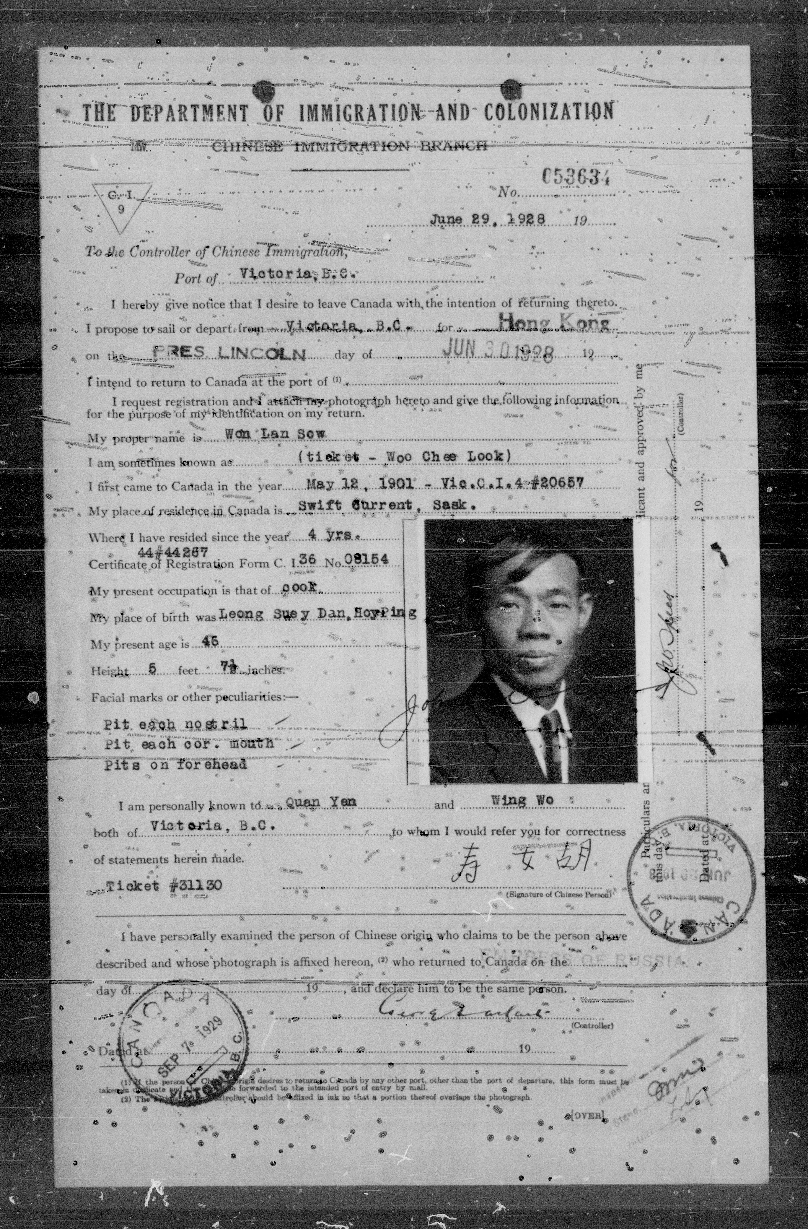 Chinese immigration records : C.I.9 certificates from Vancouver and Victoria