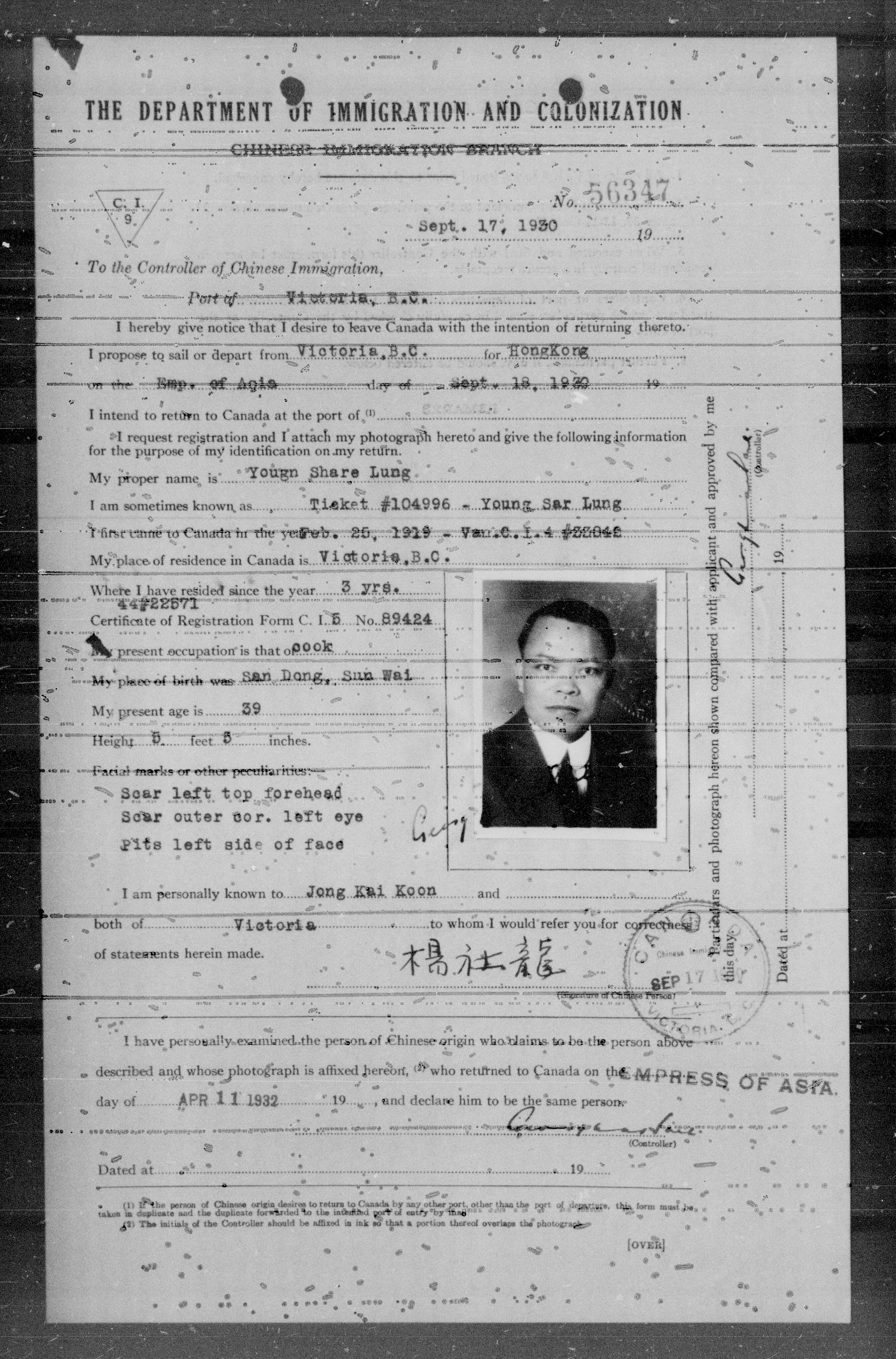 Chinese immigration records : C.I.9 certificates from Vancouver and Victoria