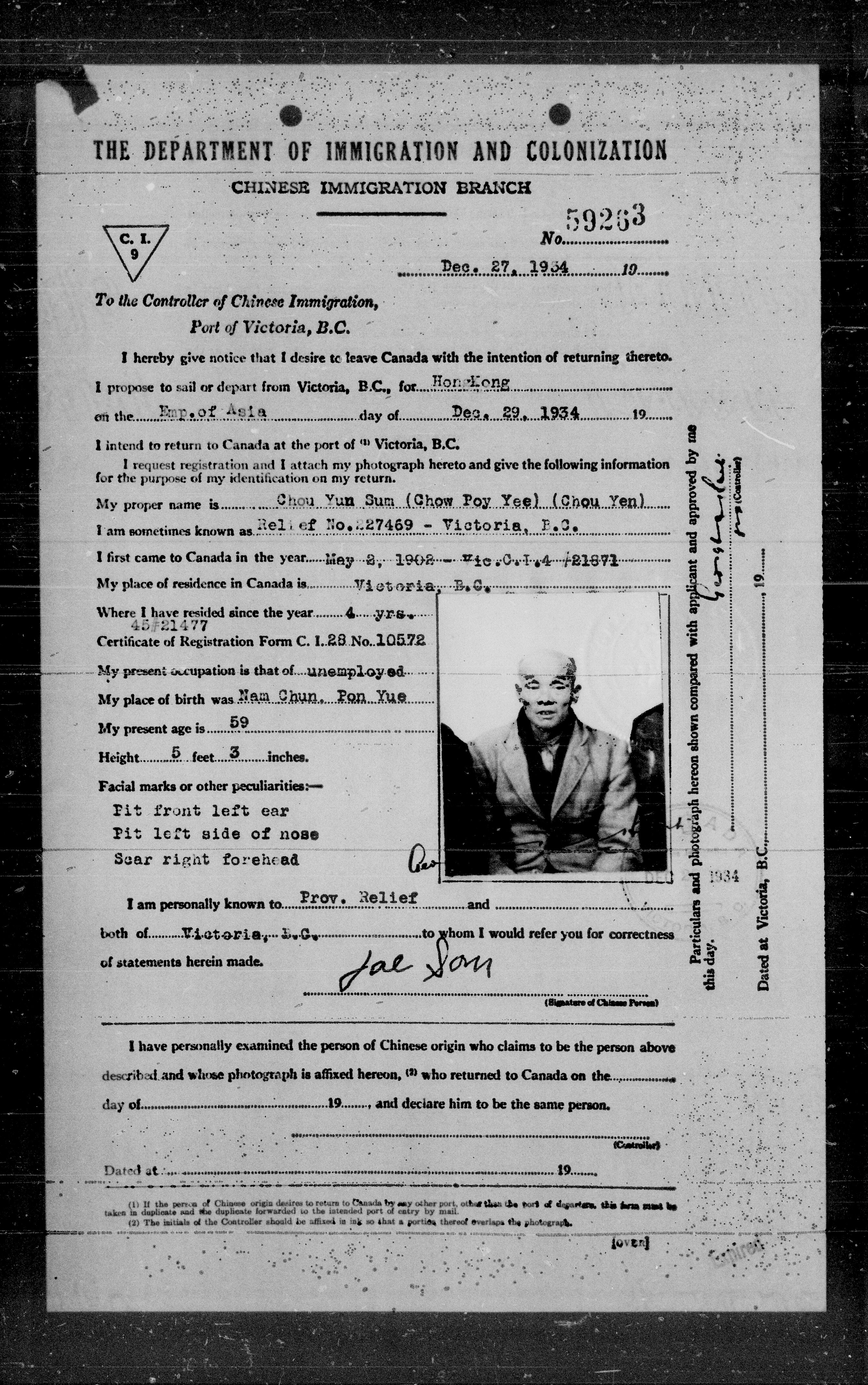 Chinese immigration records : C.I.9 certificates from Vancouver and Victoria
