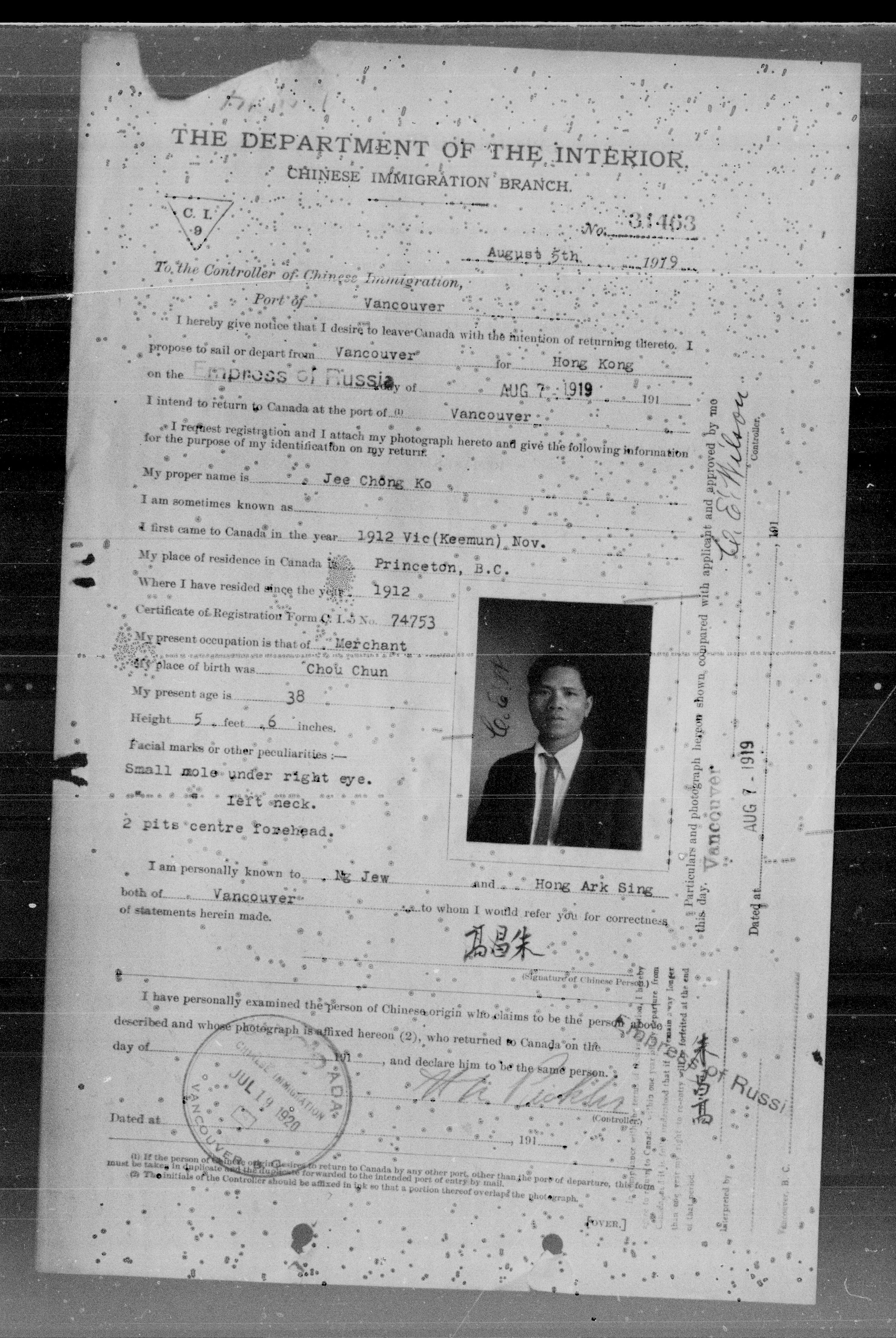 Chinese immigration records : C.I.9 certificates from Vancouver and Victoria